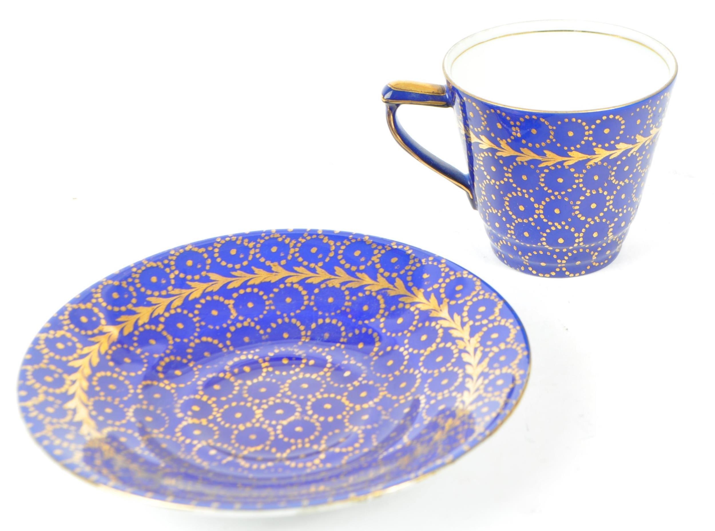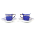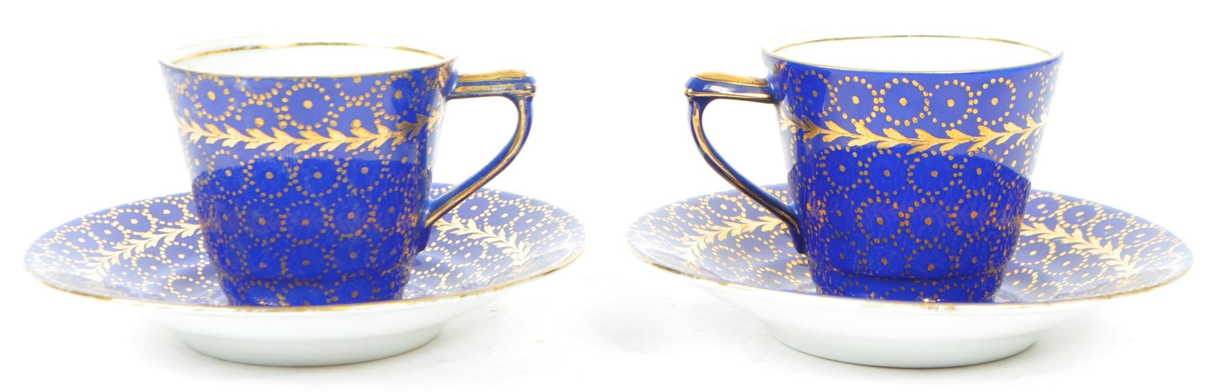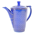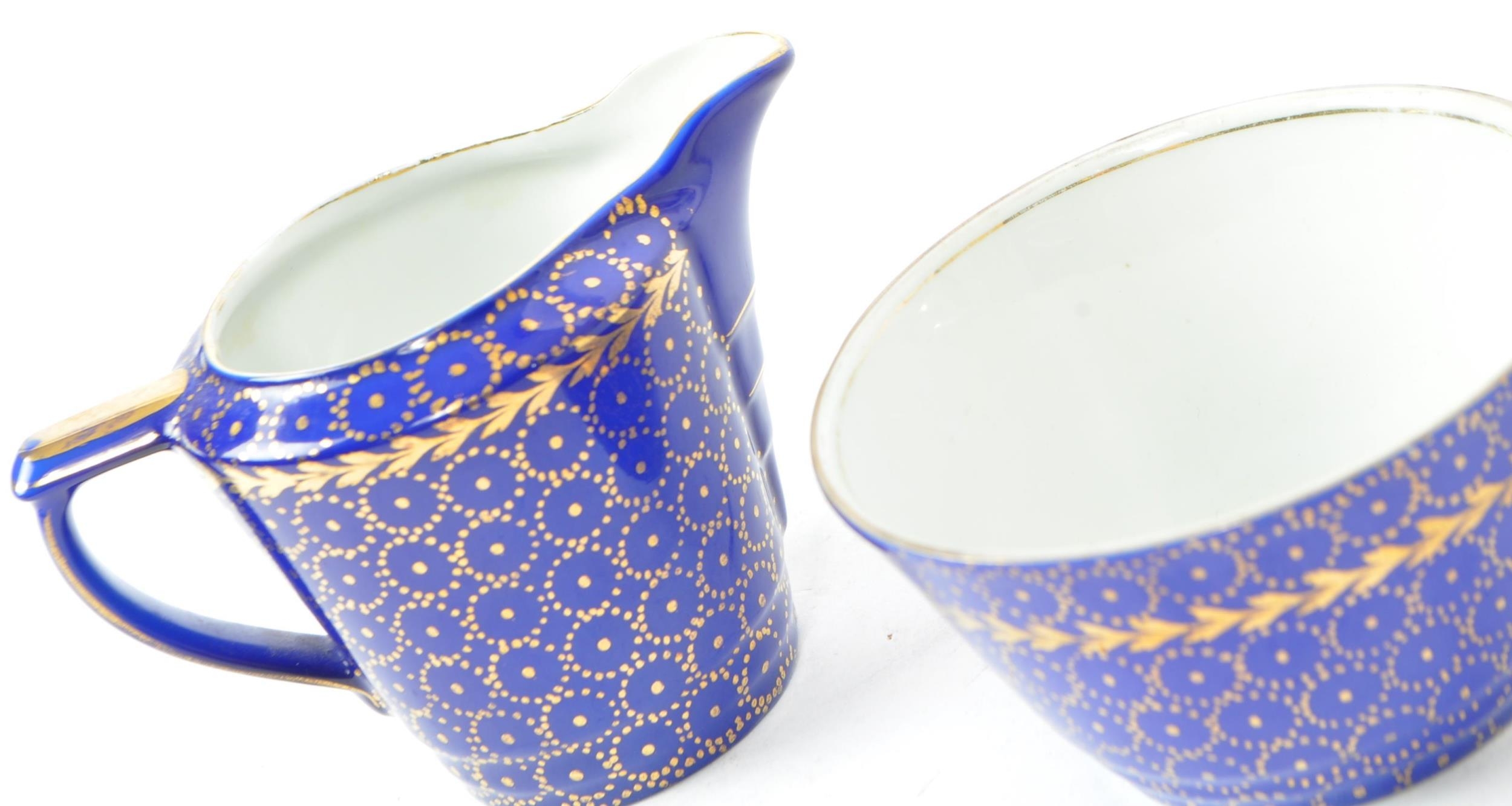 A 20th century Czechoslovakian porcelain 'Victoria' coffee service. To comprise of coffee pot, teacups, saucers, milk jug and sugar bowl. The service having cobalt ground with tessellating gilt patterning. Marked to base. Teapot measures 18cm (height).