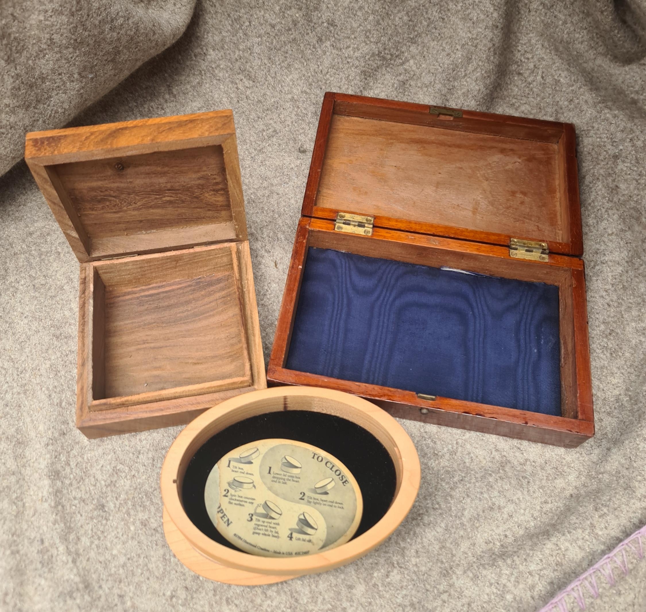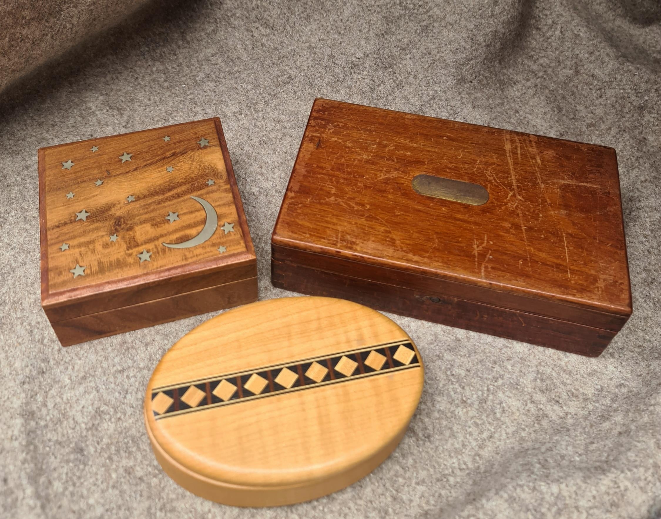 Vintage Wooden Boxes Three In Total. The largest measures 19cm wide by 12cm. Shipping is available. Please ask for a quote before bidding. Where possible we combine shipping costs. Remember, if you are the highest bidder above reserve on this Lot you have bought the item and are legally responsible for the item. Viewing is recommended in either person or via video link. Contact us to arrange.