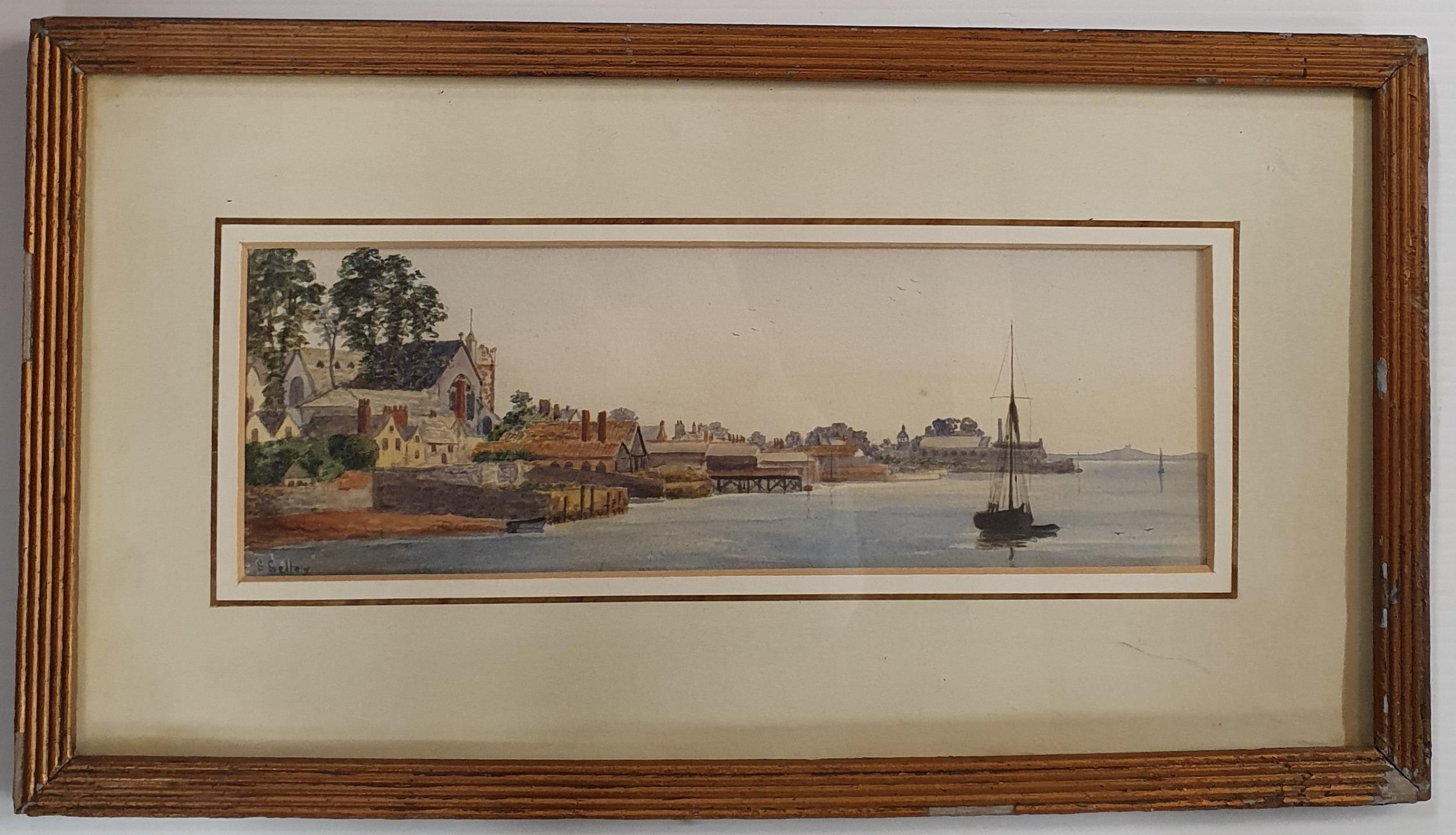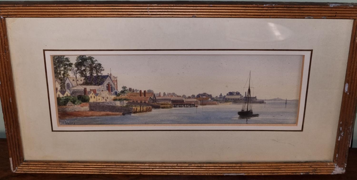 An early 20th Century Watercolour of an estuary scene by B. Selley signed LR in its original frame. H 14 x 36 cm approx.