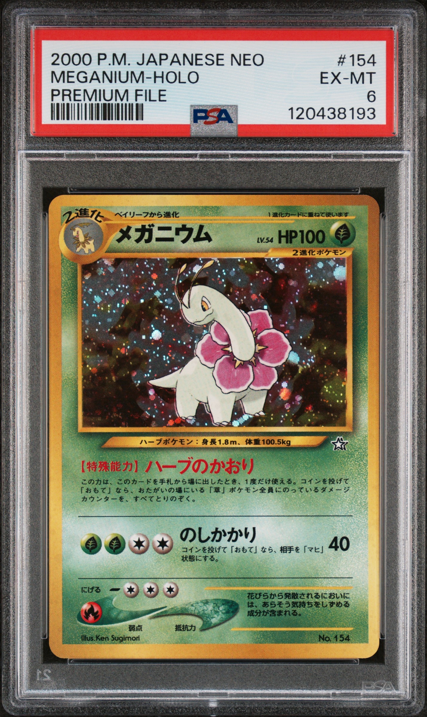 Pokemon (Pocket Monster) Card Game Japanese Neo Meganium No 154 Premium File Holo PSA 6 - Excellent - Mint