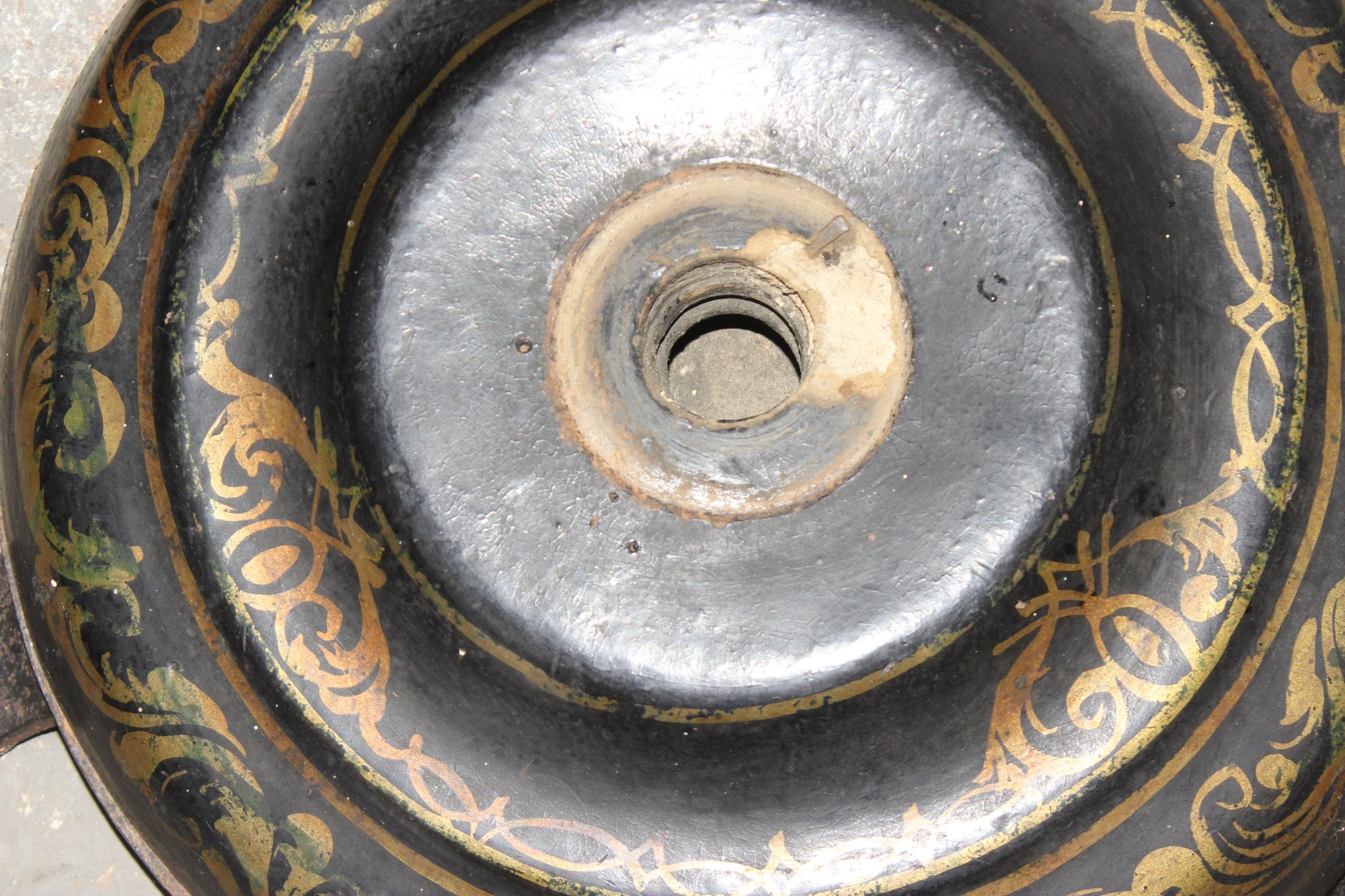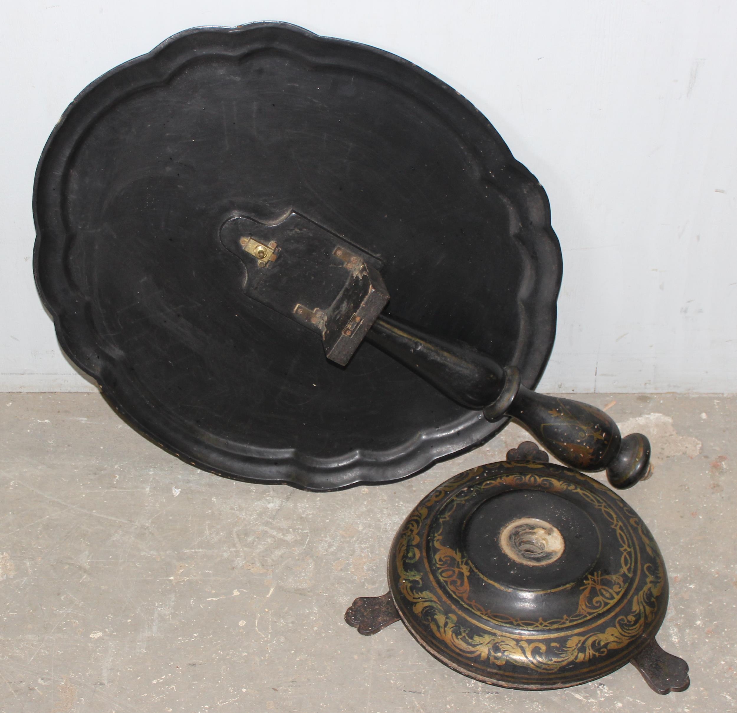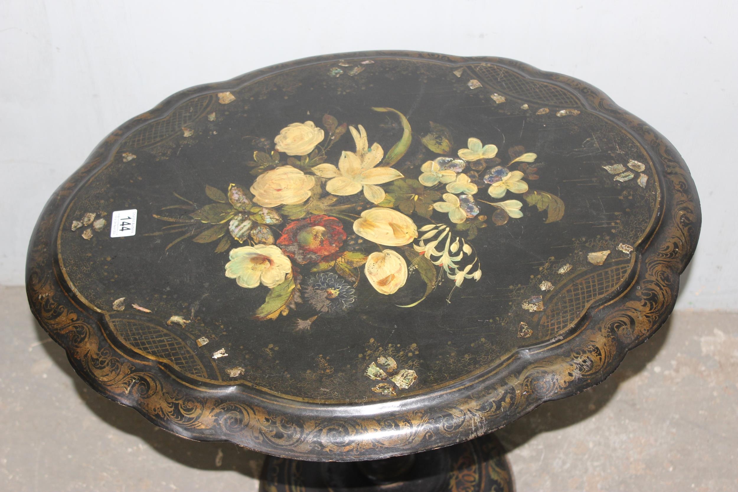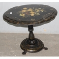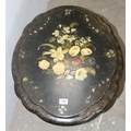 A Victorian til topped papier mache table with hand painted floral decoration, AF, approx 60cm wide x 70cm deep x 60cm tall