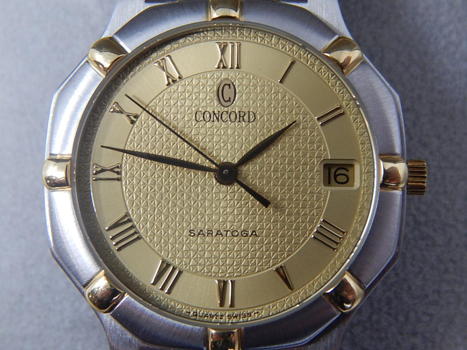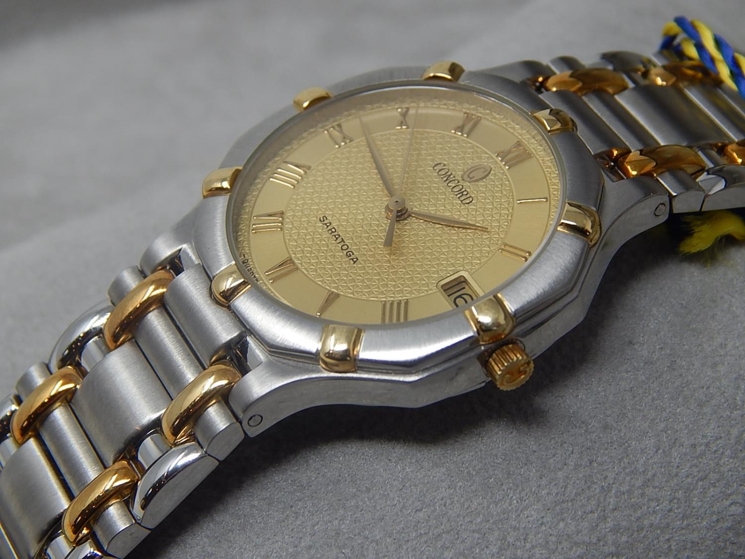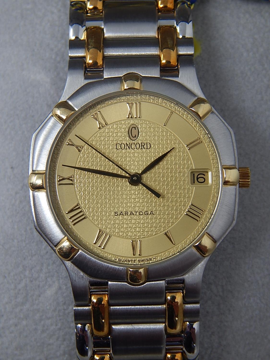 Gentleman's CONCORD SARATOGA 18ct Gold & Stainless Steel Wristwatch with Date Aperture. The Watch is Unused & is Complete with Original Tags in Its Fitted Box. Presented to our vendor by "Zayed Bin Sultan Al-Nahyan" President of The United Arab Emirates.