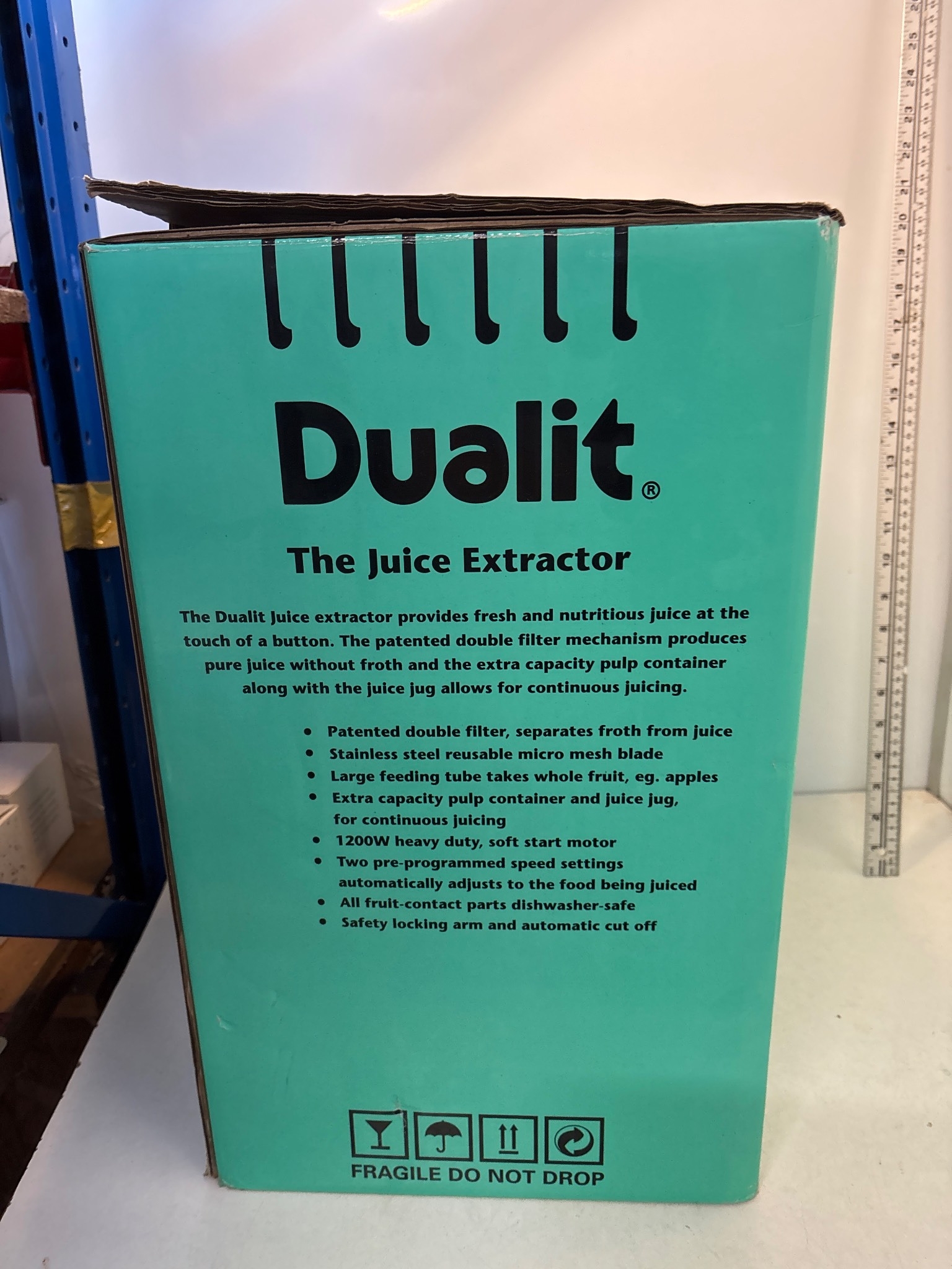 Dualit juice extractor in box with features listed, unused.