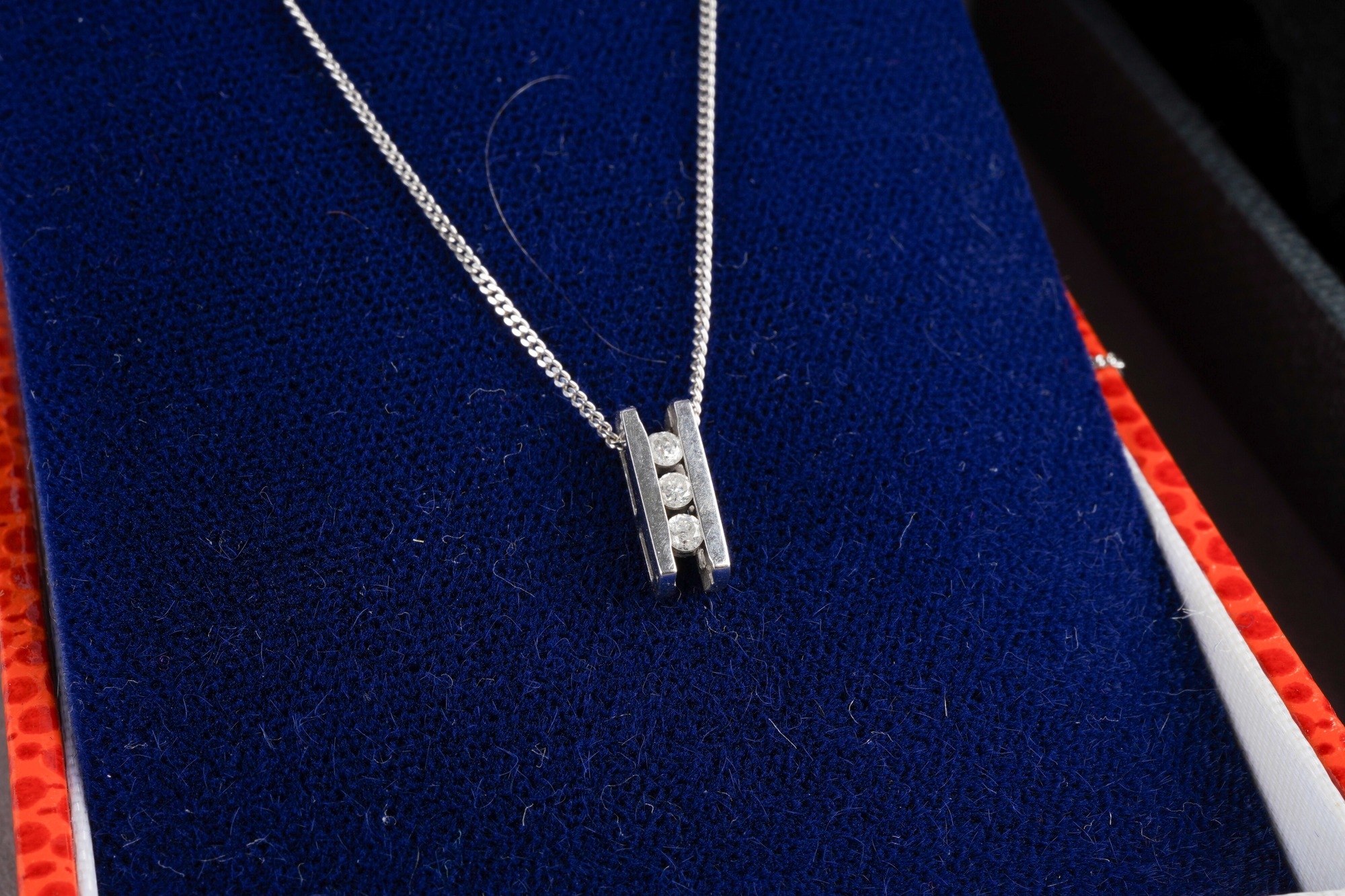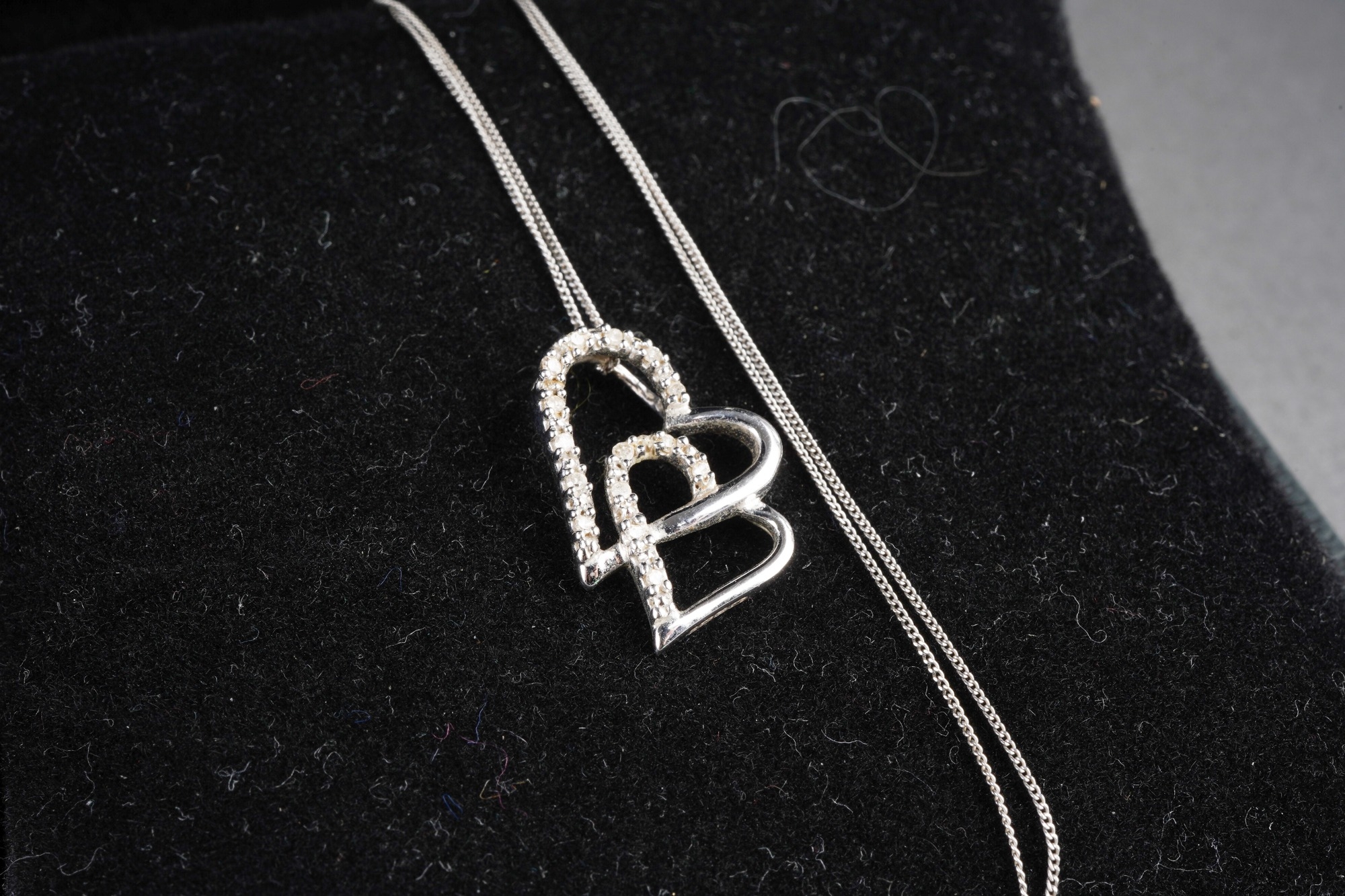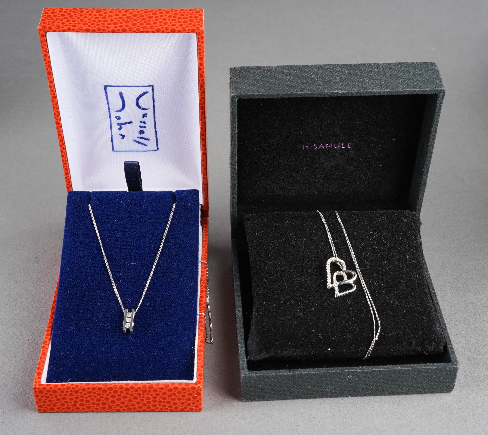 Two 9ct gold and white metal diamond set pendants with chains. One pendant hallmarked 9ct gold, one pendant stamped 10k, one chain hallmarked 9ct gold, one chain stamped 375, approx length chains 470mm and 430mm, approx gross weight 3.13grams.