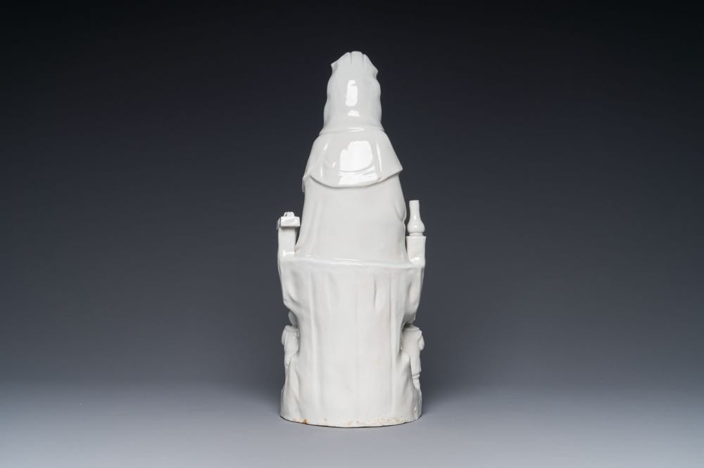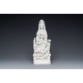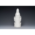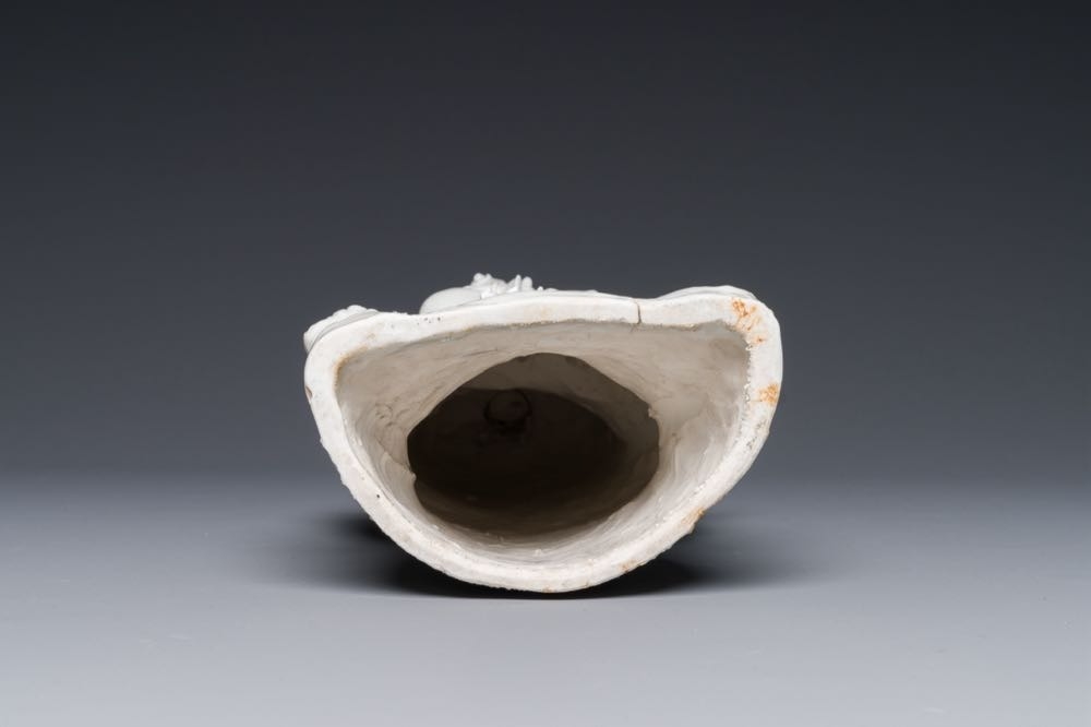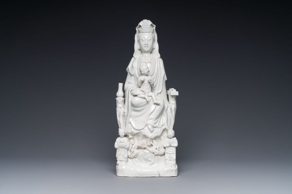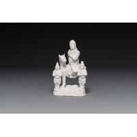 A Chinese Dehua blanc de Chine group of Guanyin with a child and servants, 18th C.
