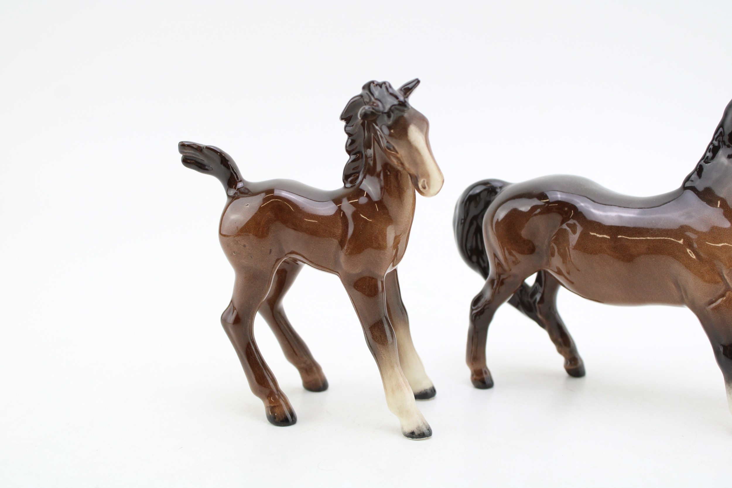 Beswick Brown Girls Pony with comical foal (2).