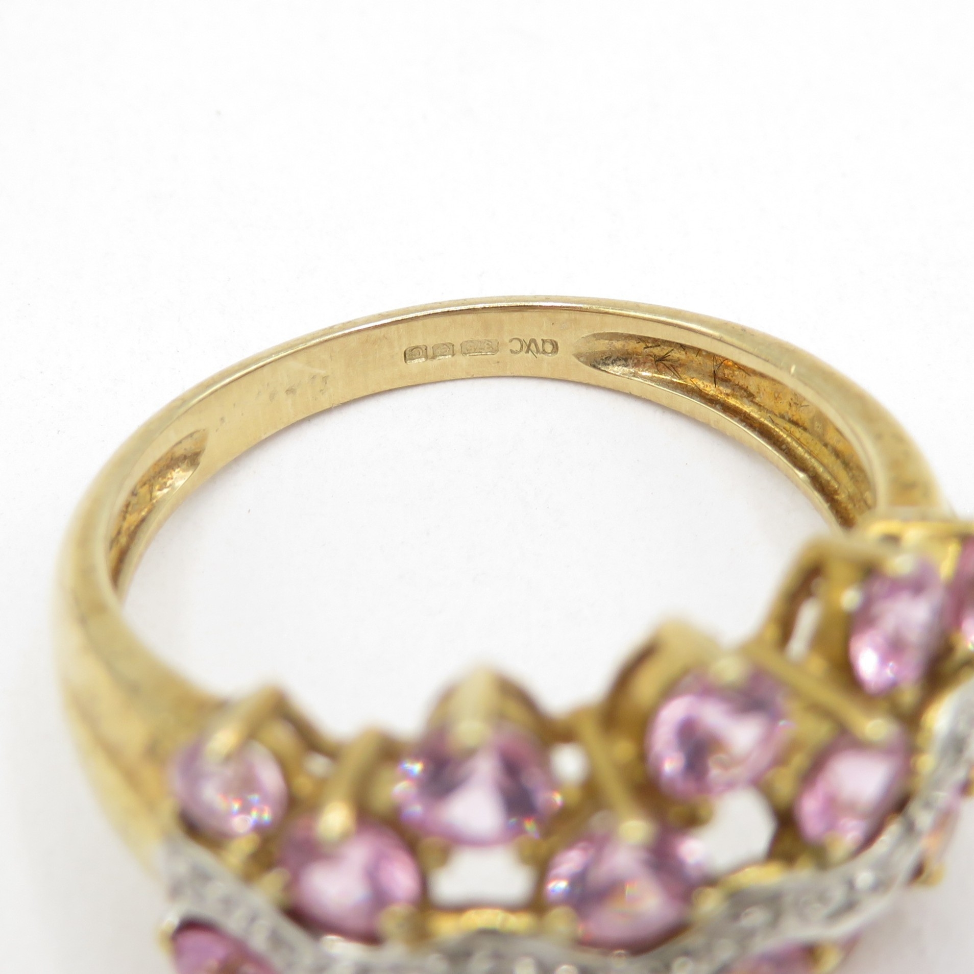 9ct gold pink sapphire and diamond ring (3.9g) size P 1/2