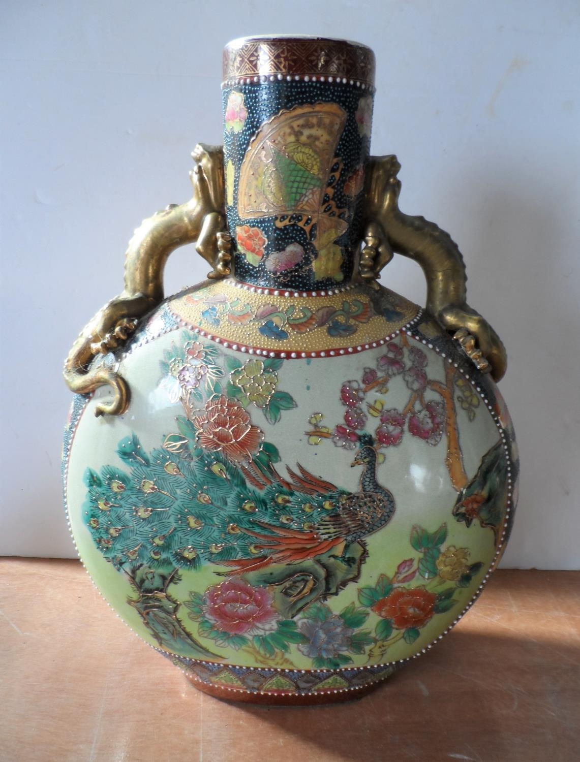 Asian 20thC extensively decorated flask vase,48 cm tall