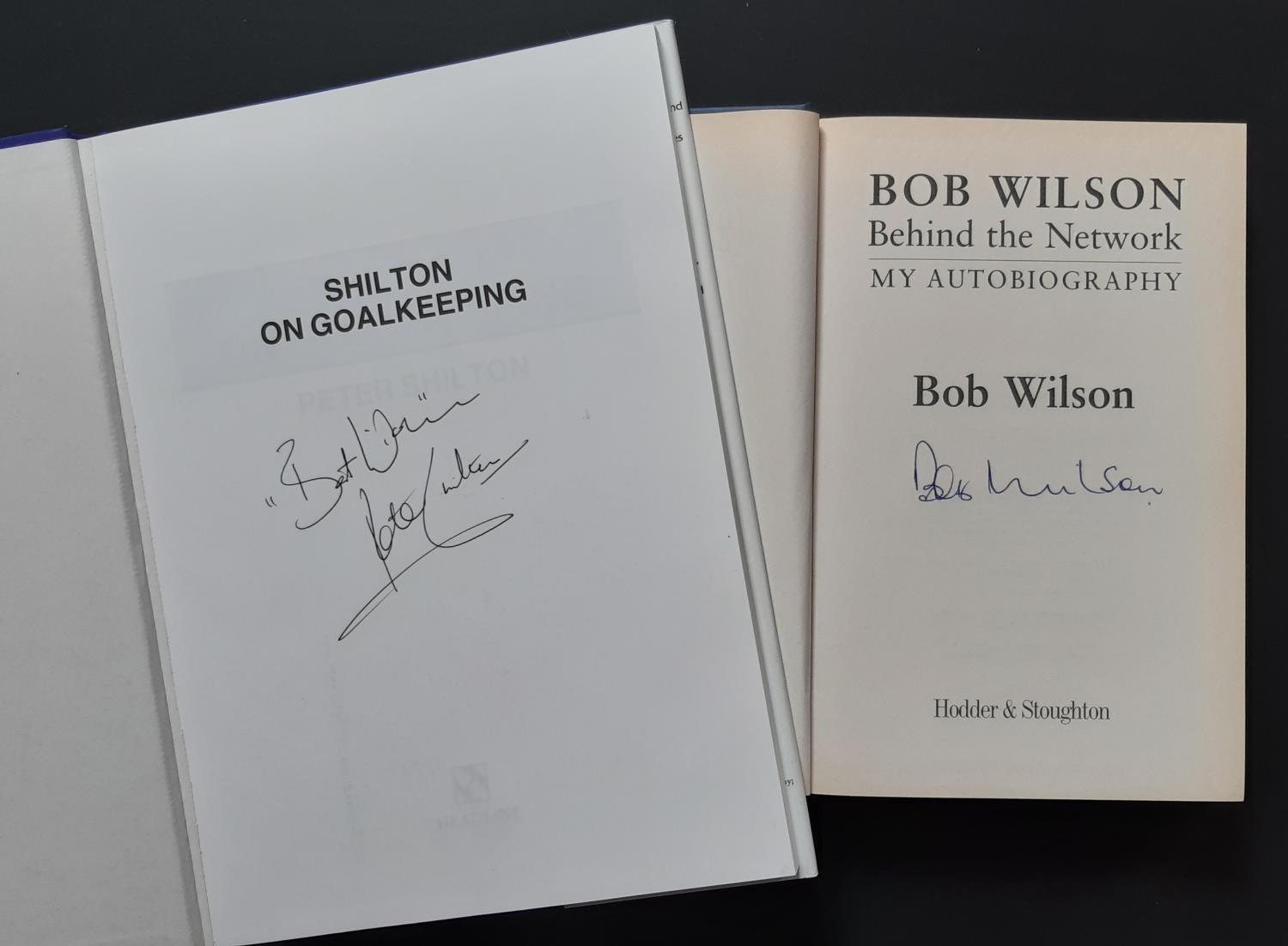 AUTOGRAPHED BOOKS, circa 2000, Signed Goalkeeper Books Bob Wilson my autobiography Behind The Network and Peter Shilton, Shilton on Goalkeeping. Estimate: £16/£30 - Opening Bid: £10