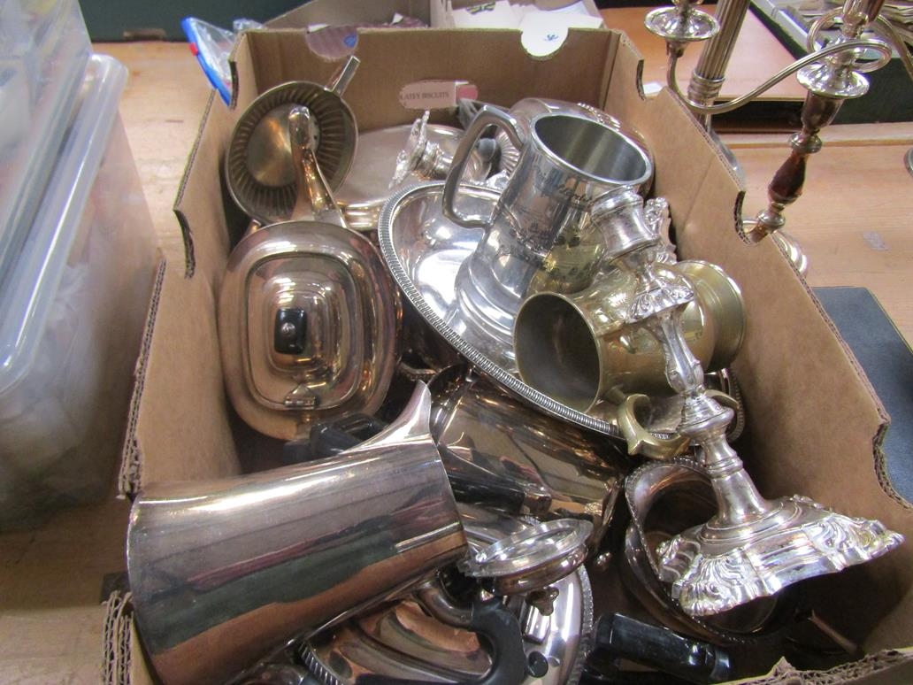 BOX OF MISC. ITEMS OF SILVER PLATE