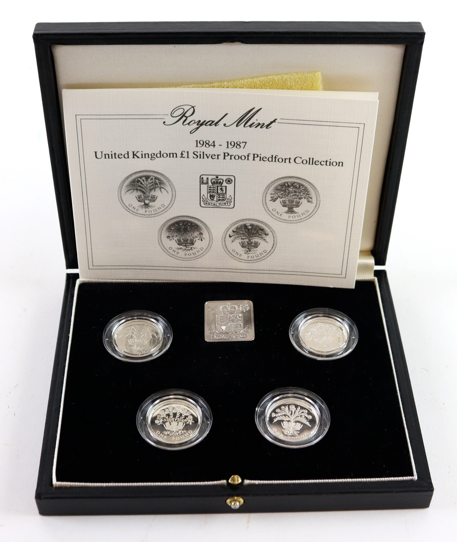 One Pound Silver Proof Piedfort four coin set 1984 - 1987 FDC boxed as issued