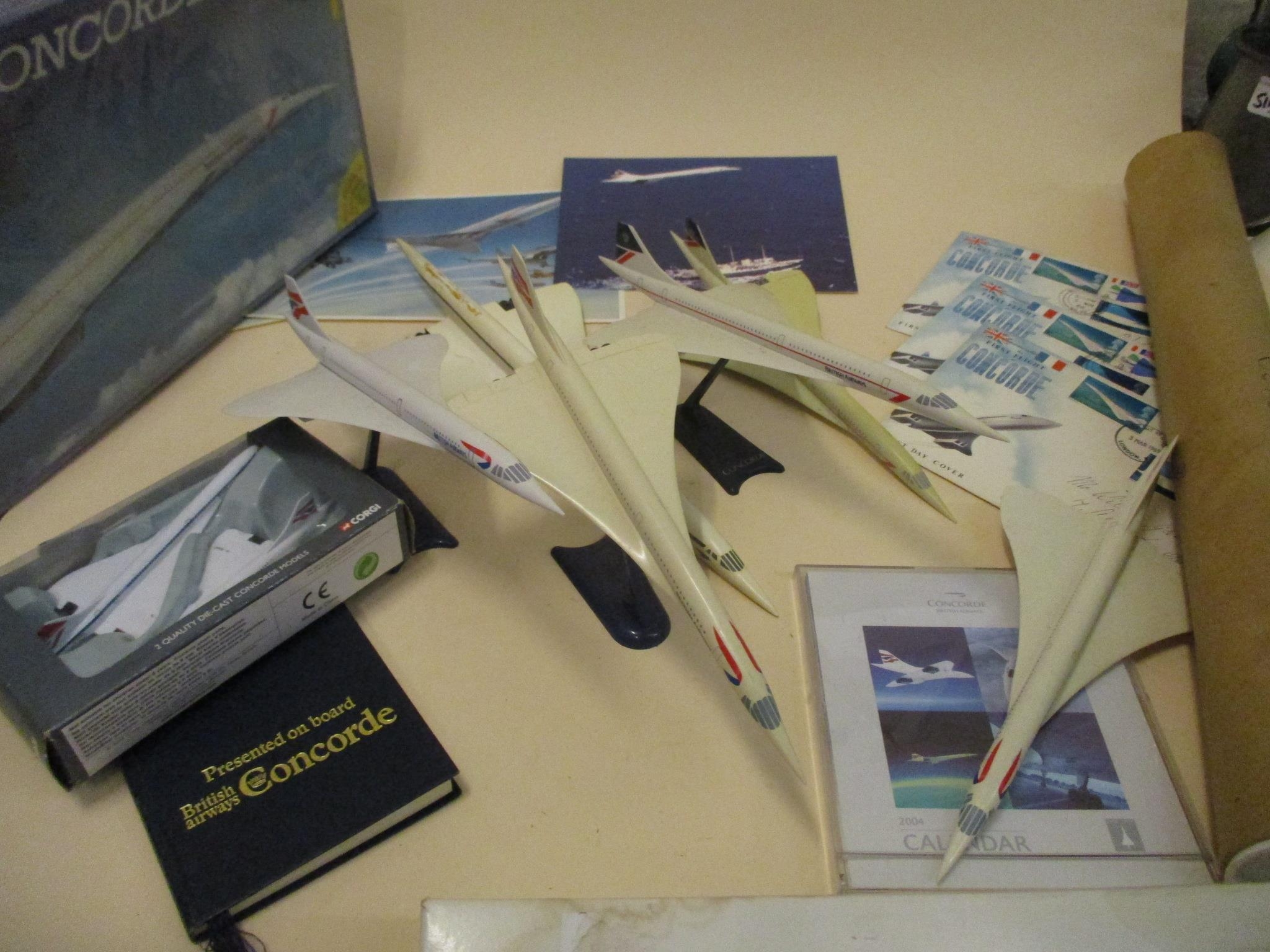 A quantity of Concorde memorabilia to include models, first day covers and a poster