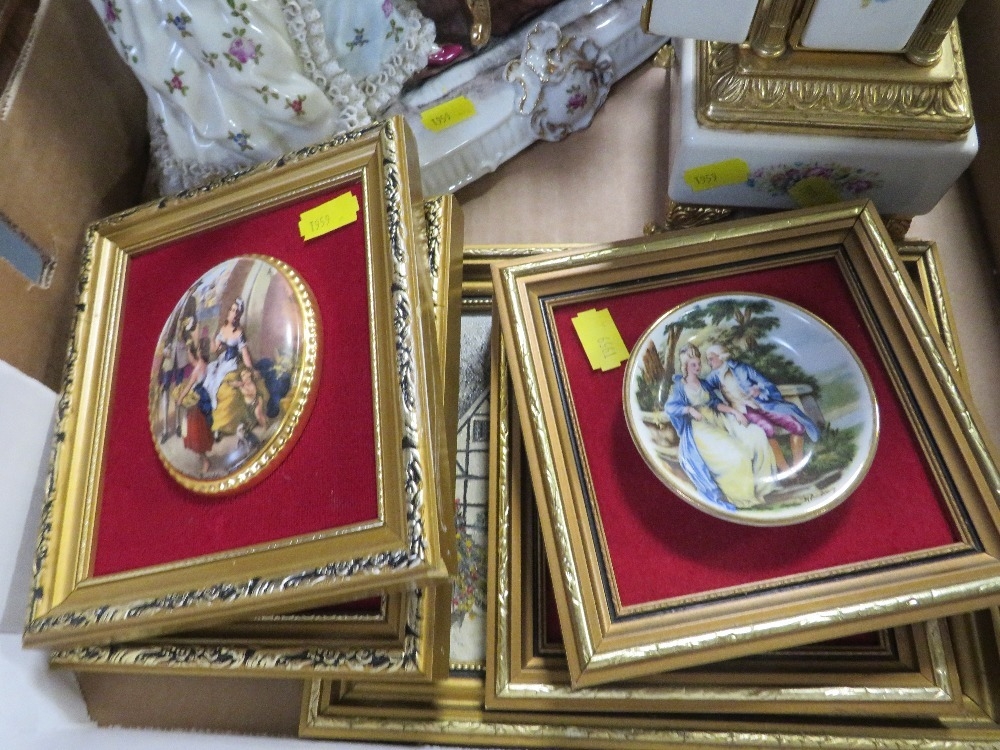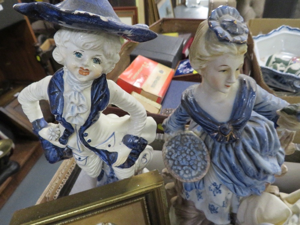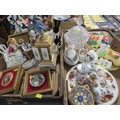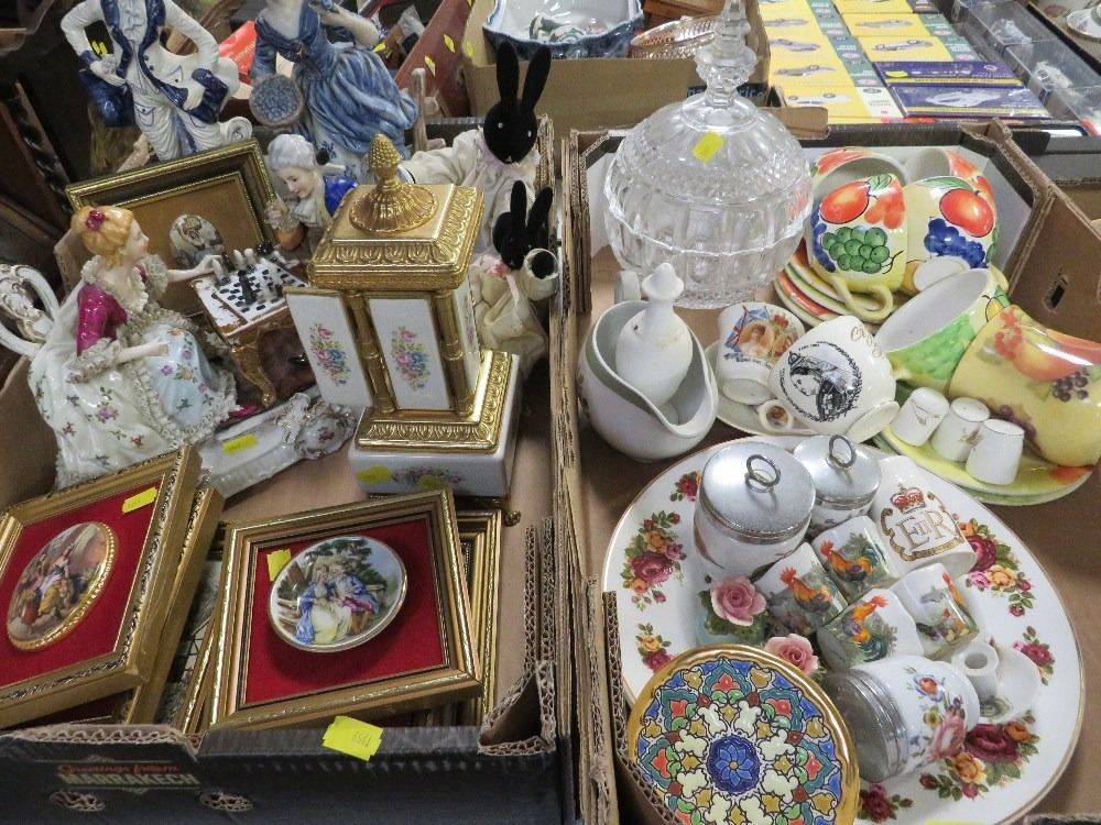 Two trays of assorted ceramics and glass to include figurines