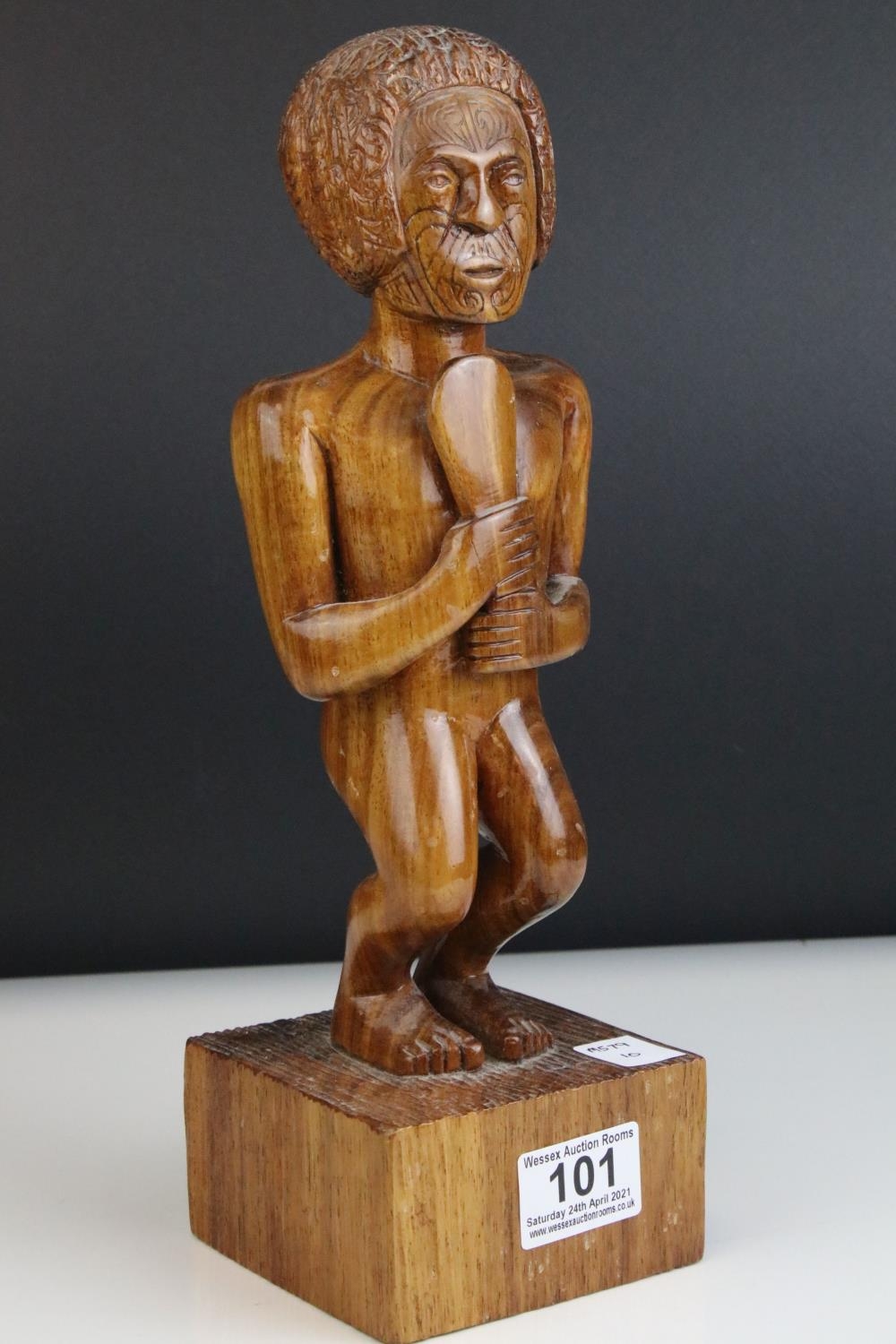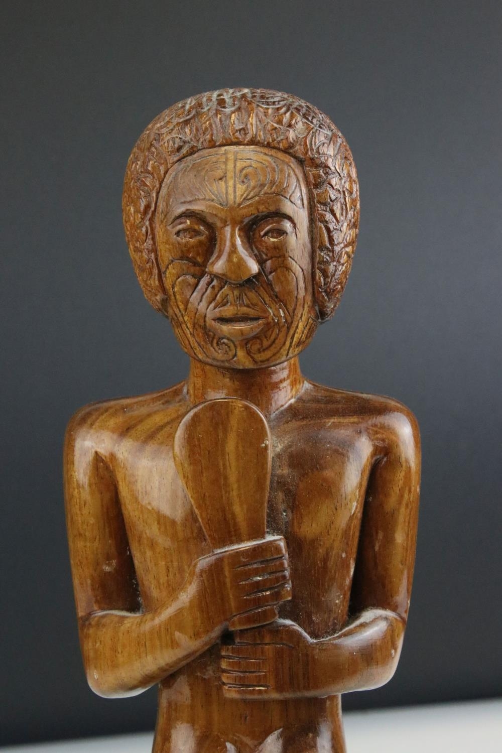Carved Hardwood Figure of a Maori Warrior with Club, 32cms high