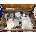 BOX OF HABERDASHERY INCLUDES SYLKO COTTON, BOXED TRAVEL IRON ETC
