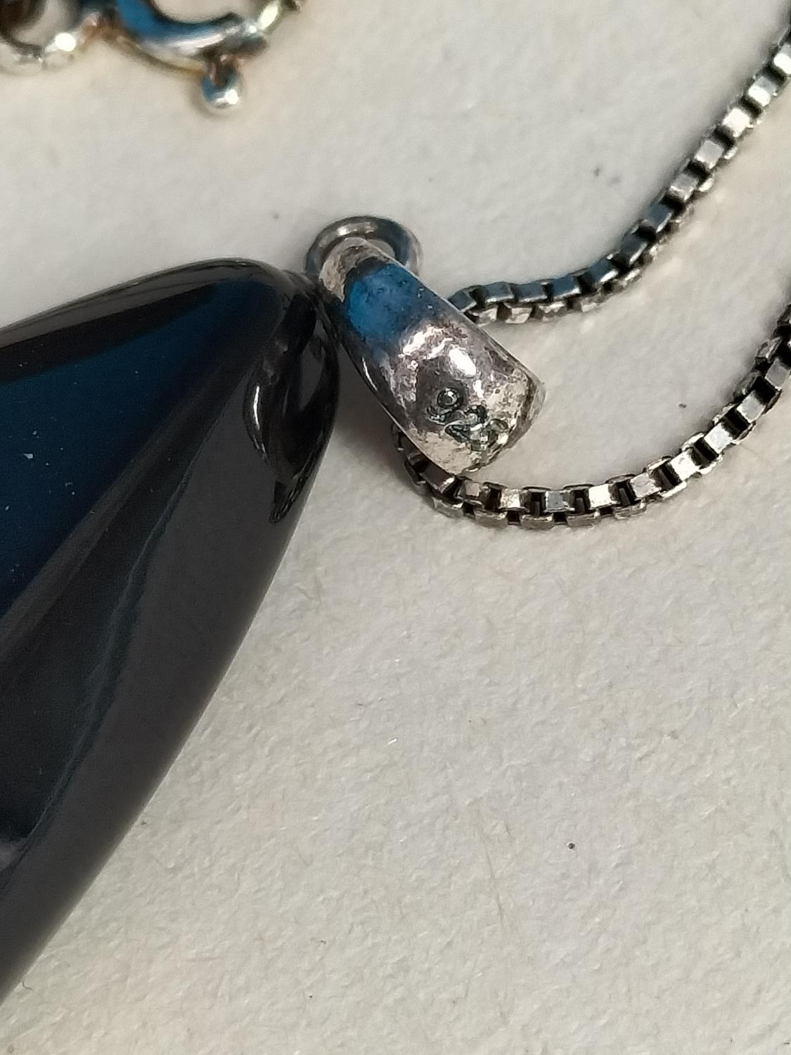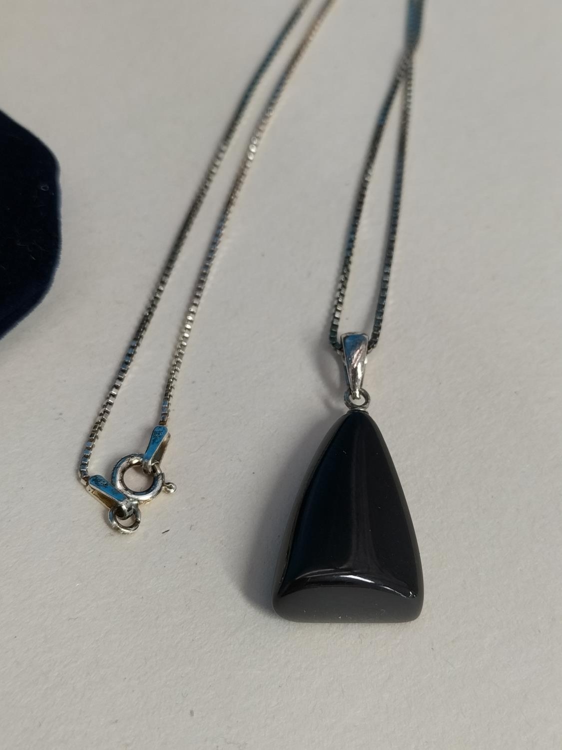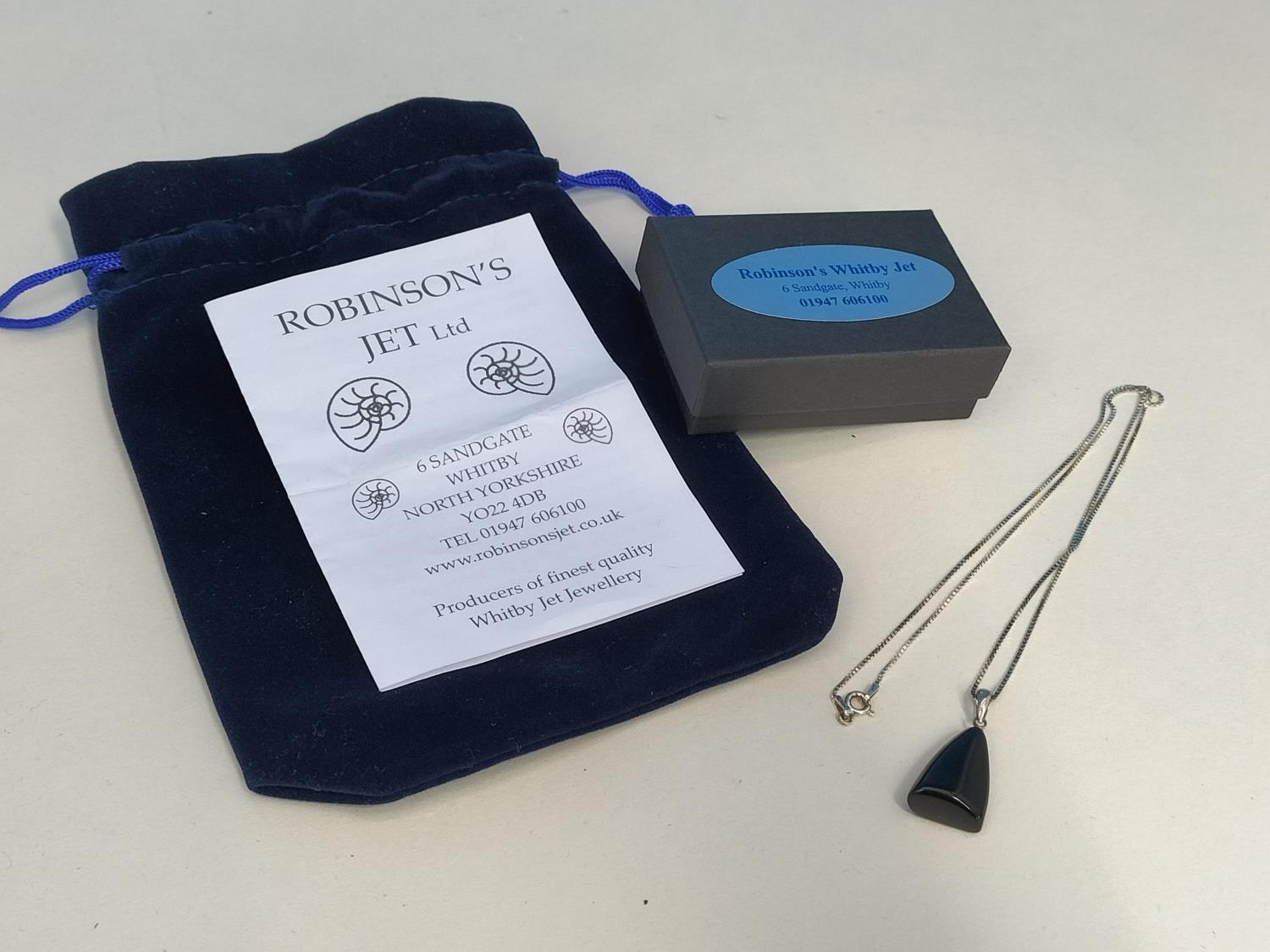 Boxed Robinson's Whitby Jet Pendant on 18" Silver Chain.