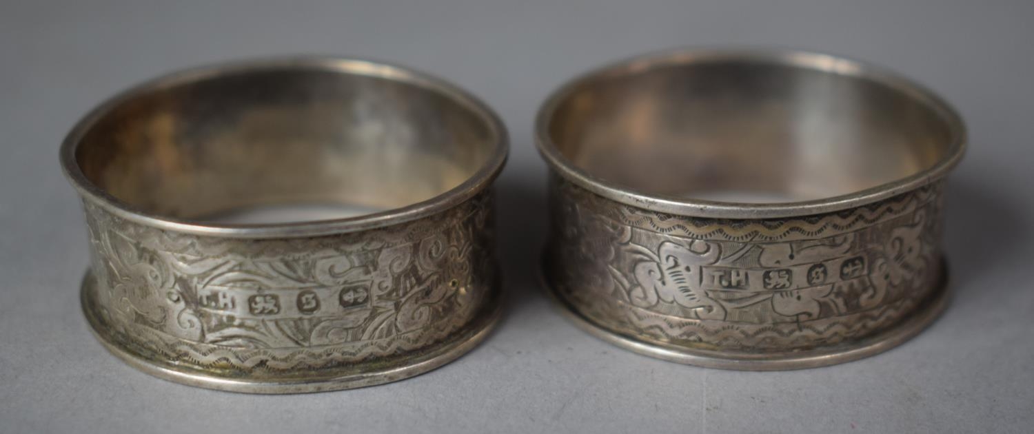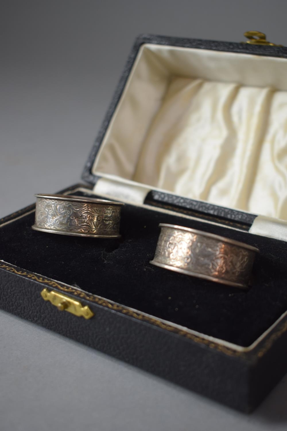 A Boxed Pair of Silver Napkin Rings Stamped for T H. Birmingham 1892