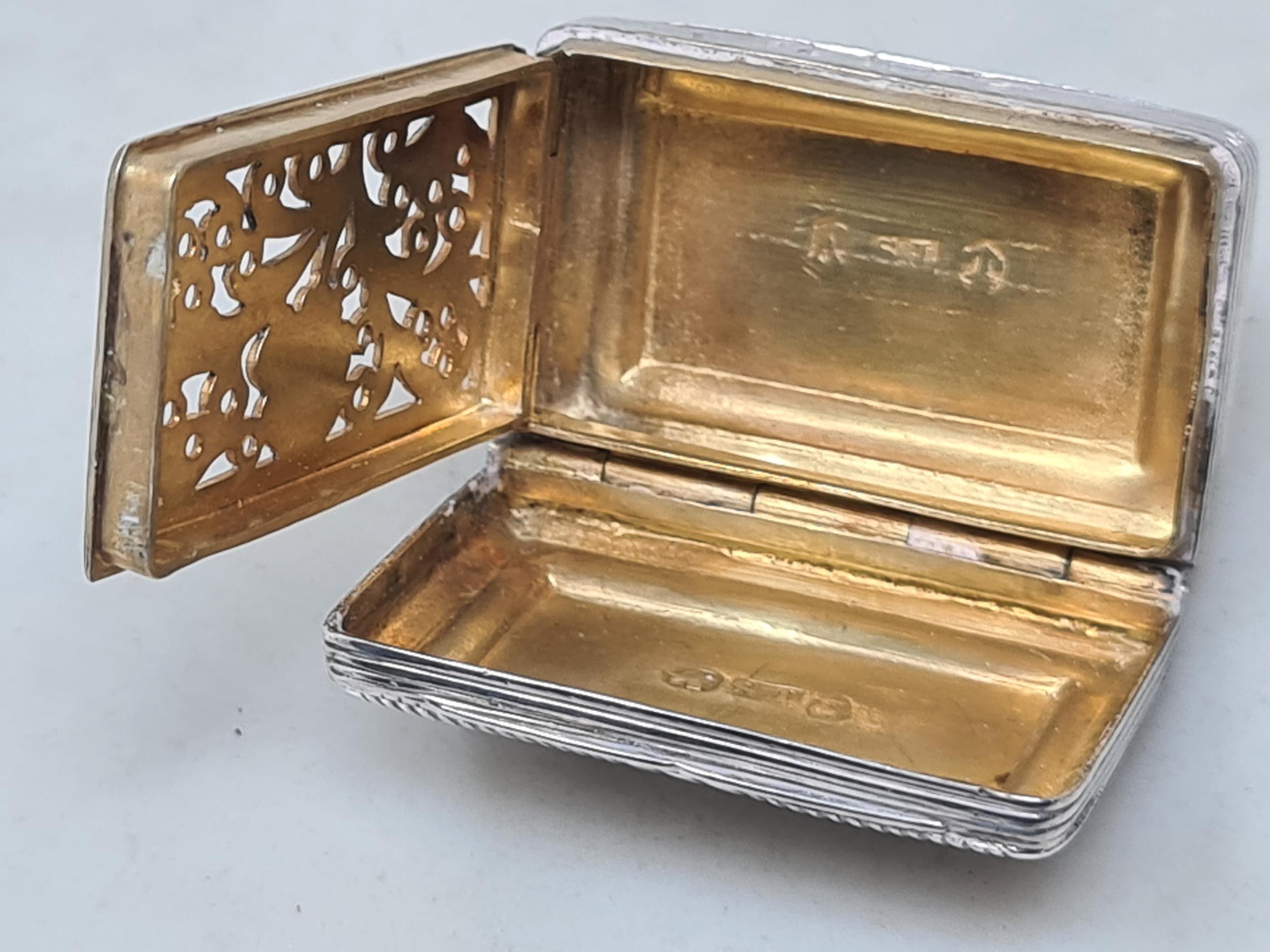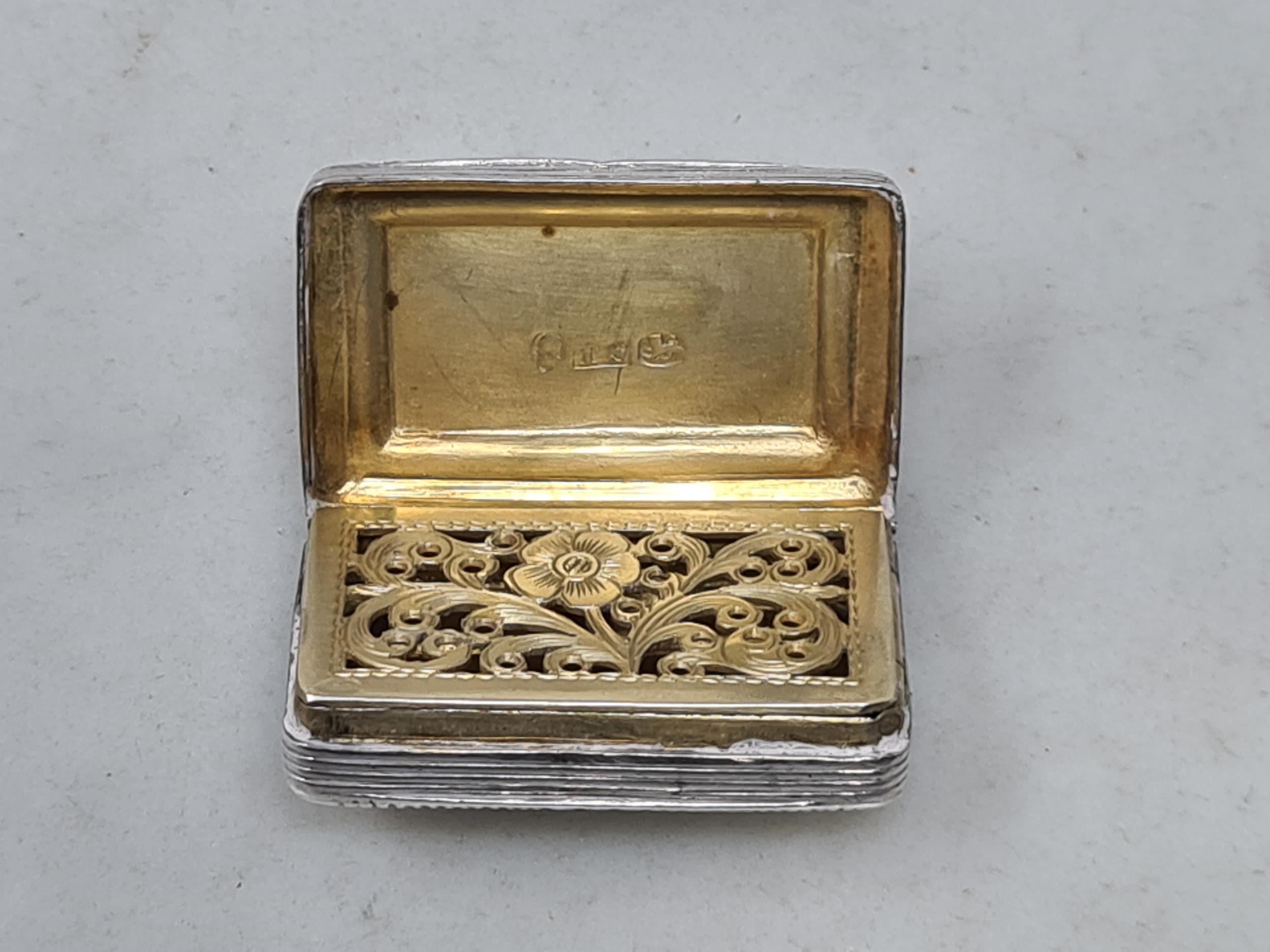 A George IV silver Vinaigrette with vacant rectangular cartouche, floral grille, Birmingham 1822, maker: Thomas Smith