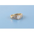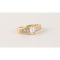 Property of a deceased estate - an 18ct yellow gold diamond ring, the centre emerald cut diamond weighing approximately 0.71 carat, the estimated total diamond weight 1.91 carats, approximately 5.3 grams, size O/P.