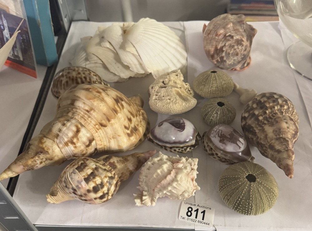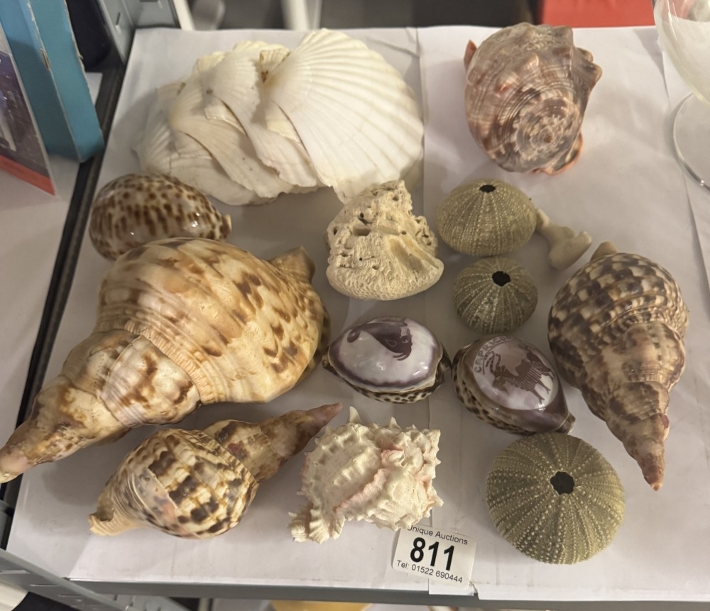 A mixed lot of shells including carved examples etc