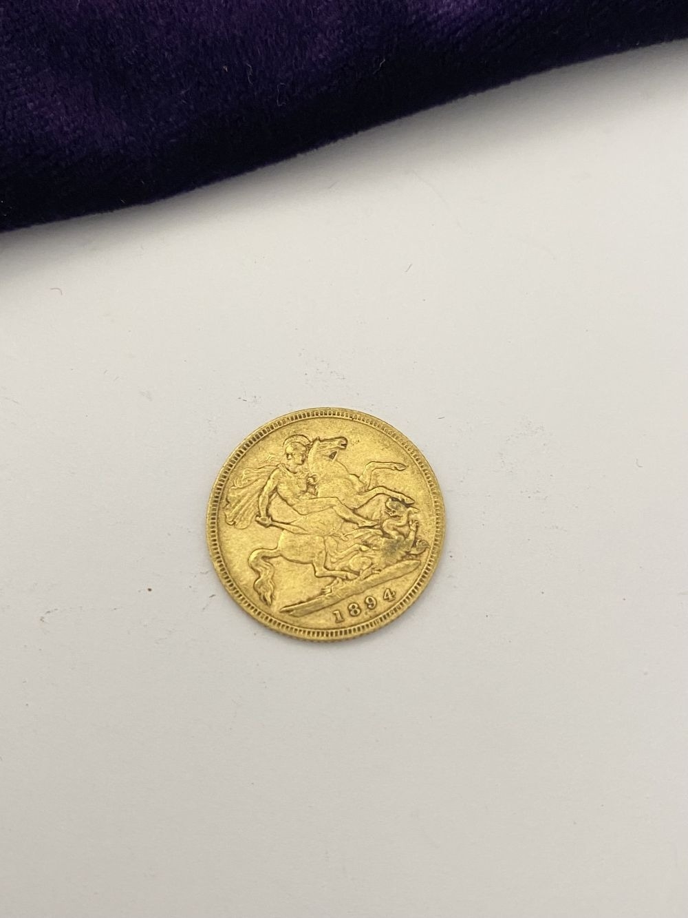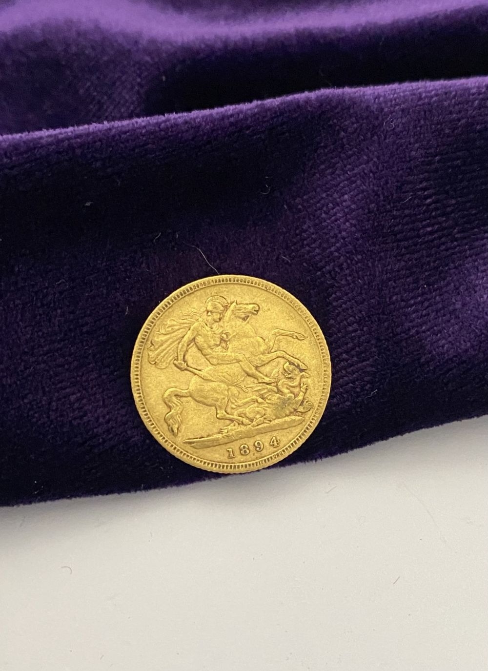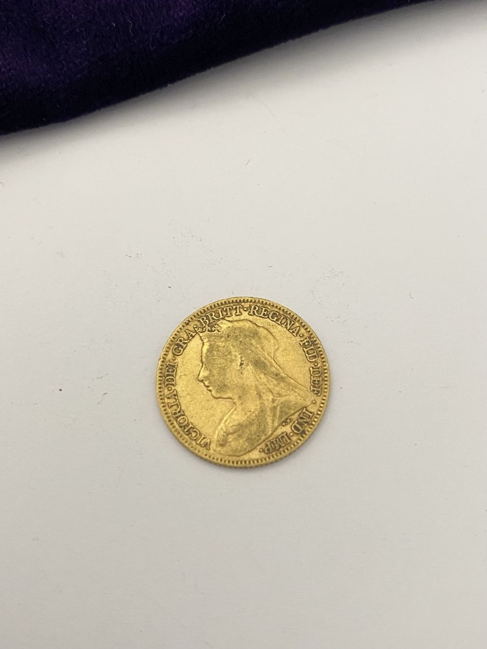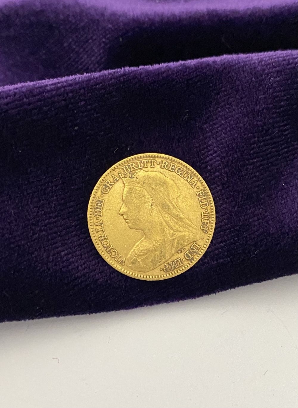 A VICTORIA GOLD HALF-SOVEREIGN – 1894, Jubilee portrait of Queen Victoria, crowned, veiled bust facing left, Latin legend VICTORIA DEI GRATIA and toothed border surrounding. The reverse with crowned quartered shield of the Royal arms in frame, Latin legend BRITANNIARUM REGINA FID: DEF and toothed border surrounding. Weight: 3.97g. The Latin legend translates as “Victoria, by the Grace of God’ to the front and “Queen of the Britons, Defender of the Faith” to reverse. Condition as photographed
