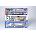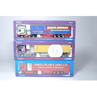 Corgi (boxed) 1/50 diecast model truck issues comprising sets in the livery of Inta-site, Tarmac and Robinson. Look to be mostly without obvious sign of notable (damage) faults, albeit, some display wear possible and not checked for absolute completeness. Note incorrect boxes for two sets.
