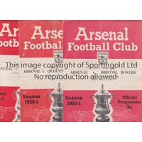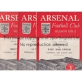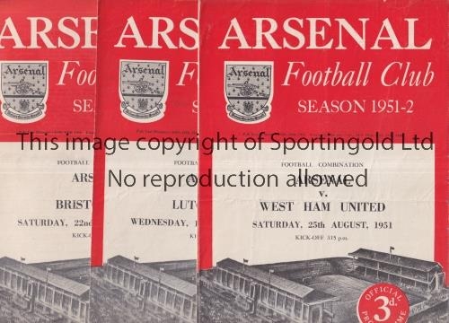 ARSENAL Nineteen home programmes for Football Combination matches for season 1951/2. Missing Bournemouth, Tottenham postponed, Brentford Cup and Brighton Cup. Ipswich and Tottenham have scores on the cover. All are slightly creased and some have team changes and scores entered. Fair to generally good