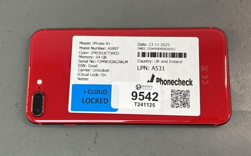 IPHONE 8+/ A1897/ RED/64GB/ IMEI-359499089826052 (I-CLOUD LOCKED)