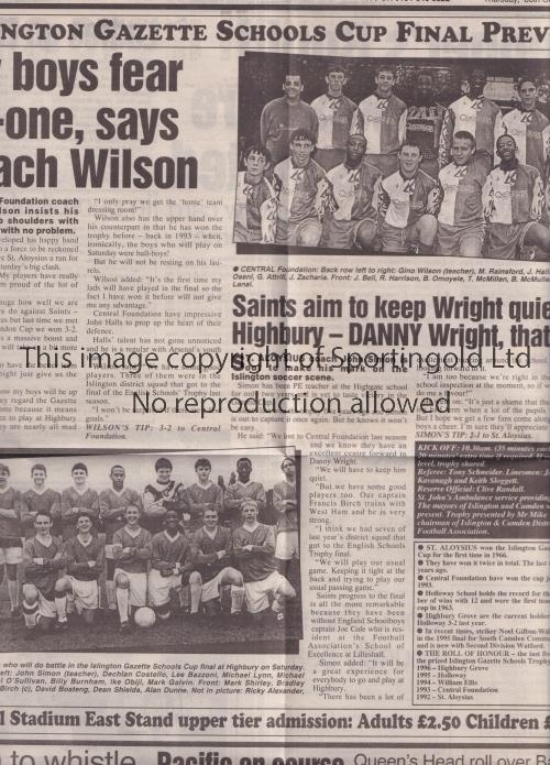 1997 ISLINGTON GAZETTE SCHOOLS CUP FINAL Arsenal F.C. did not issue a programme on order to encourage spectators to buy the newspaper. The only programme issued was the team line-ups from the page in the newspaper. Good