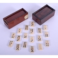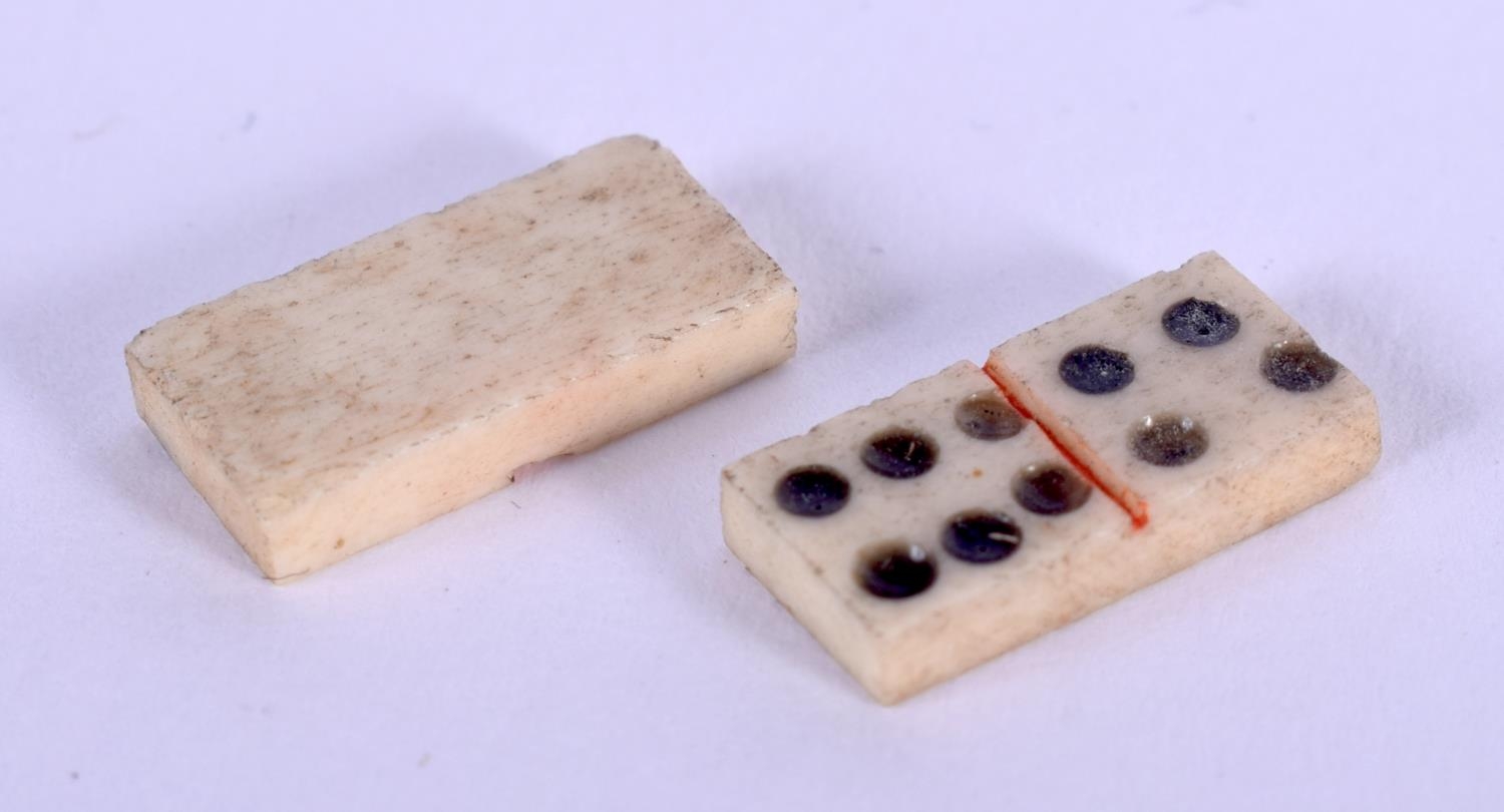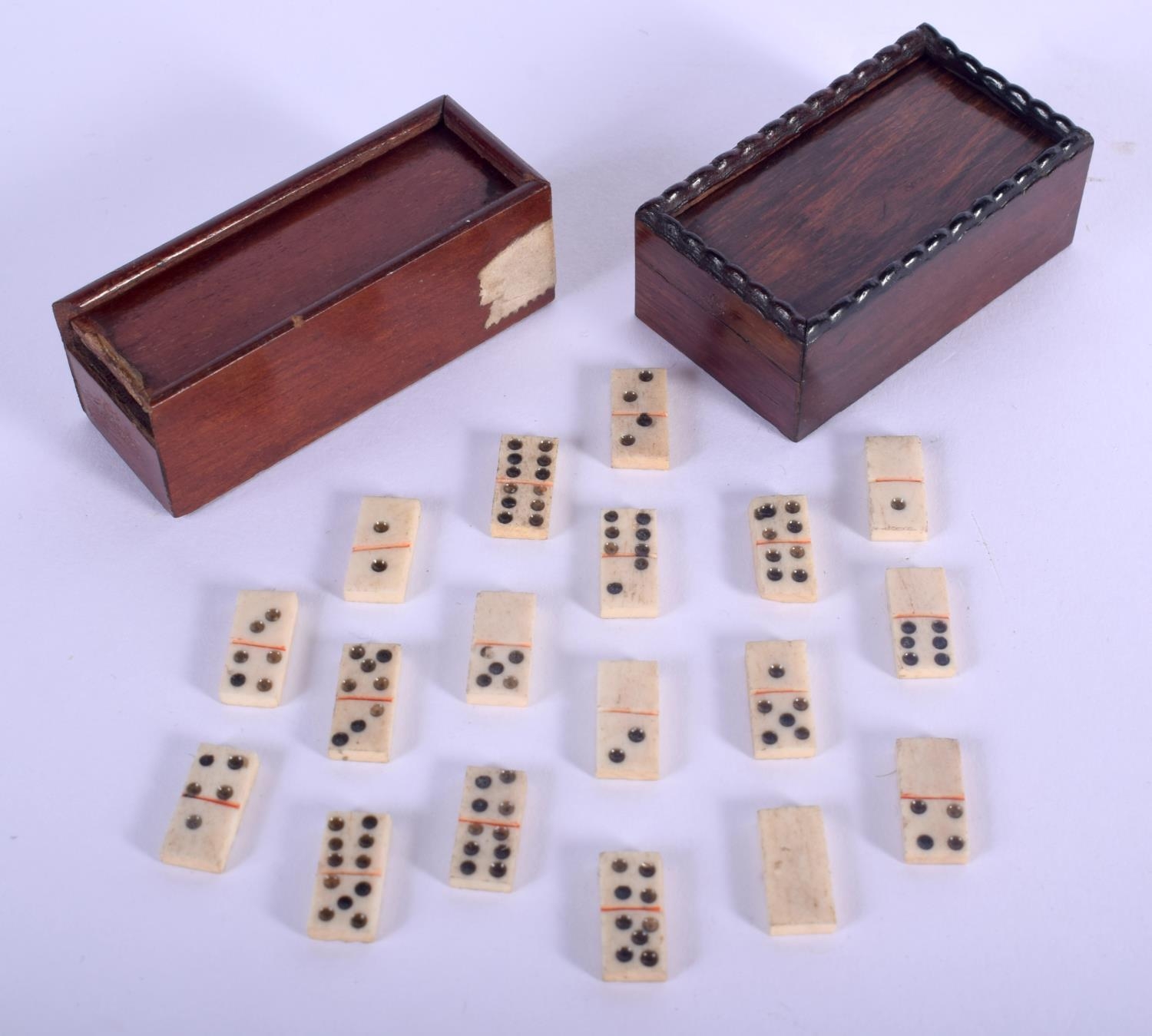 A SET OF EARLY 19TH CENTURY BONE DOMINOS within a fine quality box, together with another domino box. (qty)