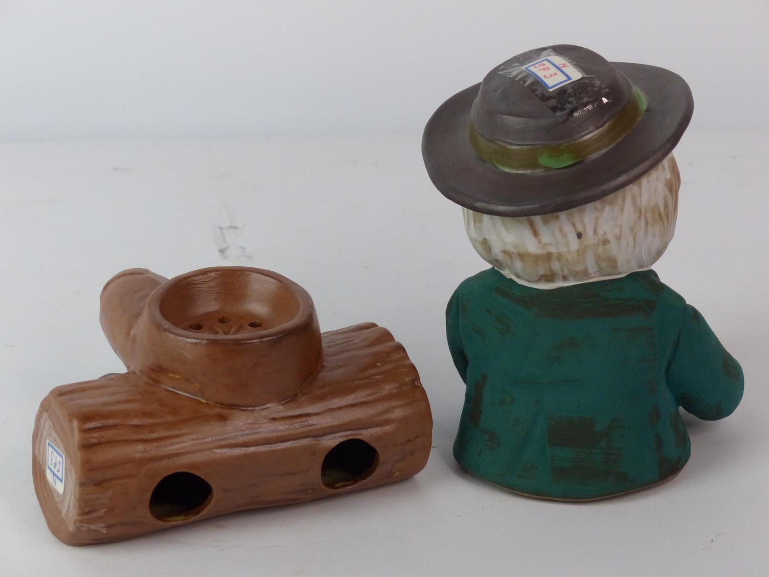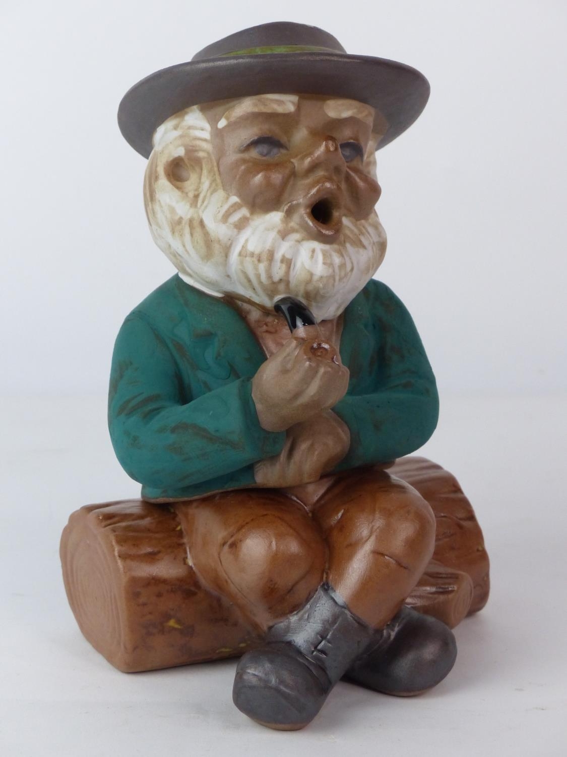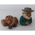 A vintage novelty ceramic incense burner, modelled as an old man smoking his pipe.