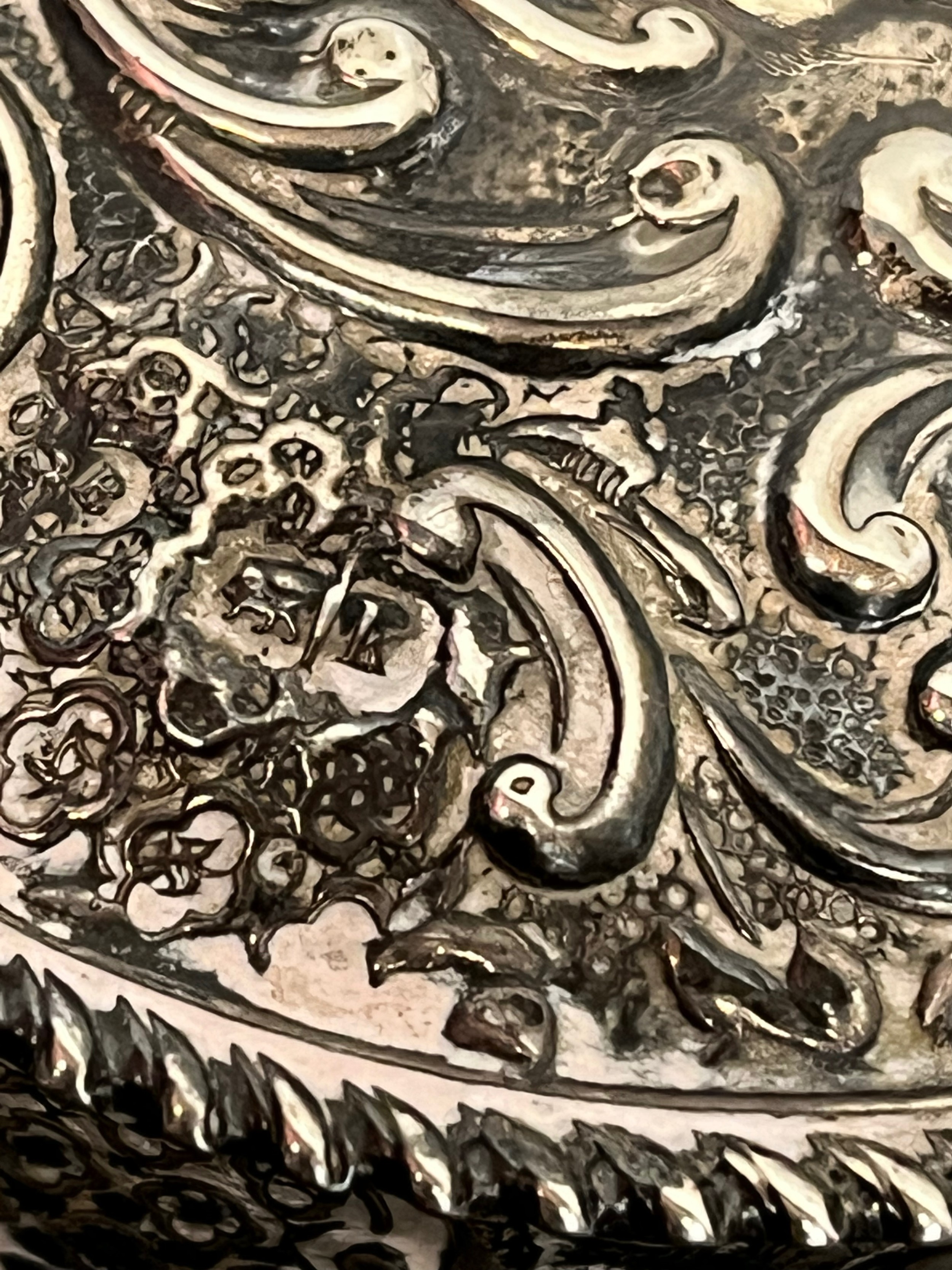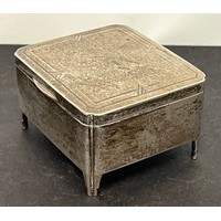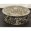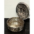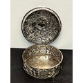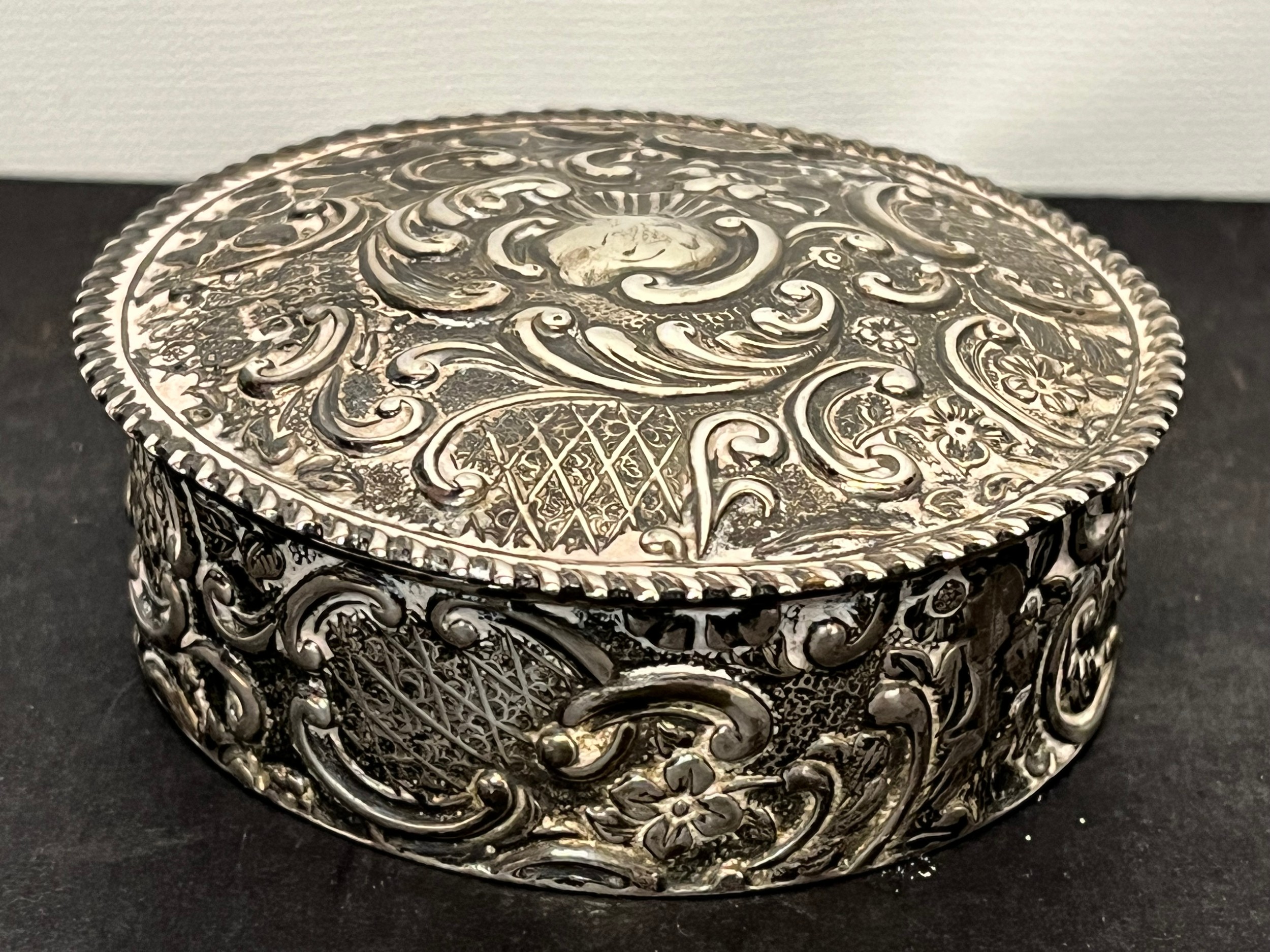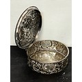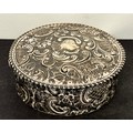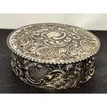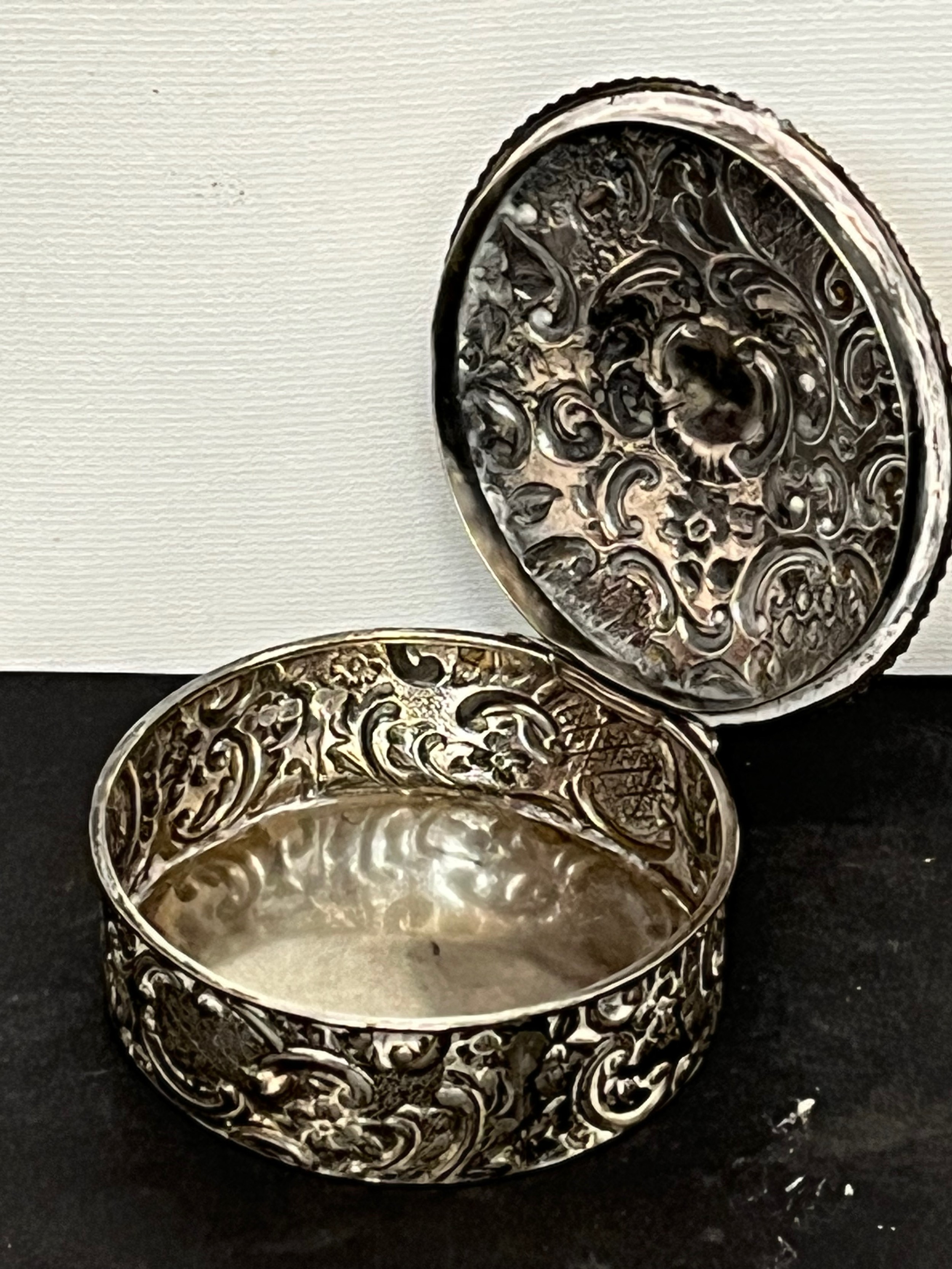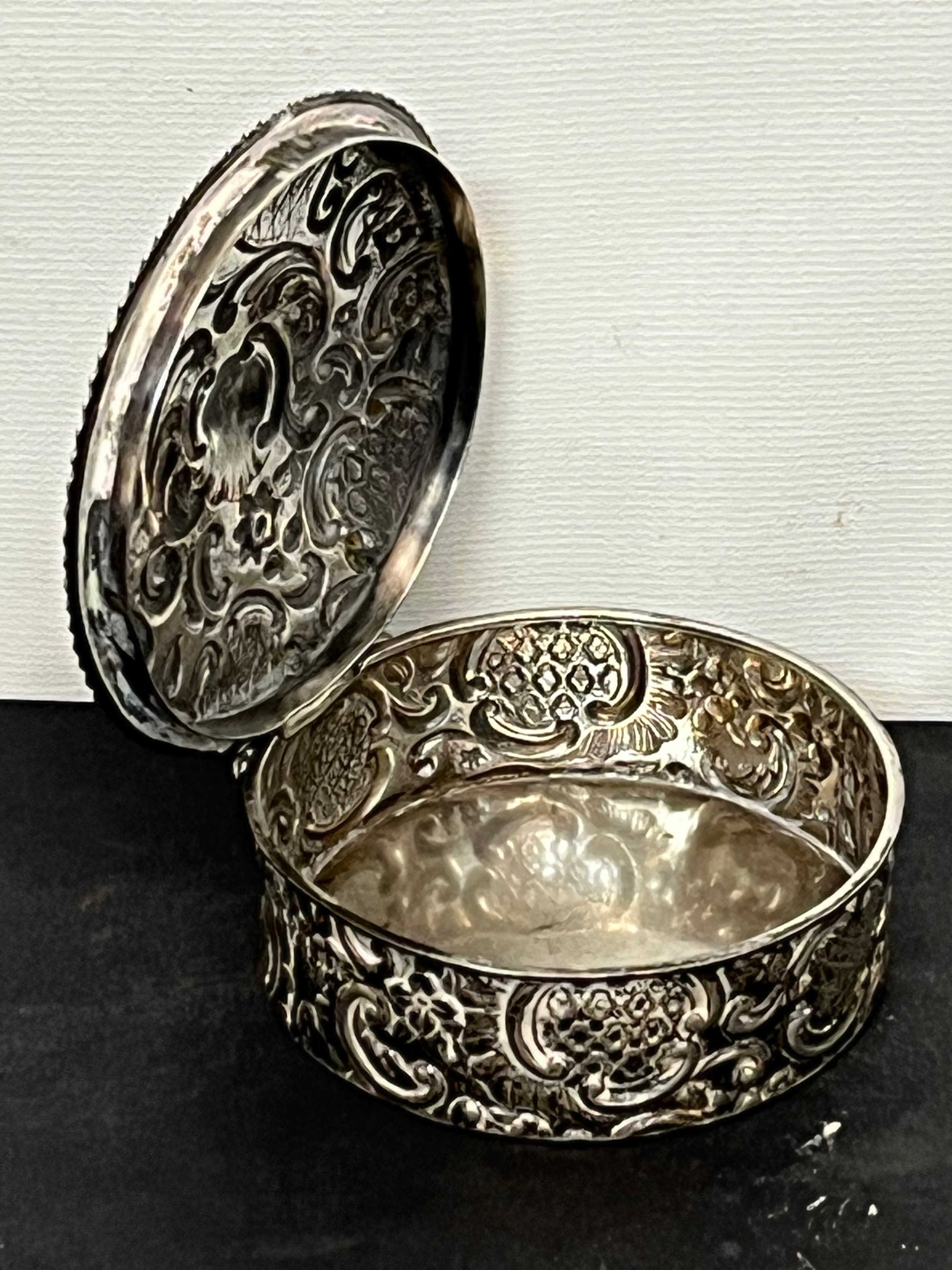 Hallmarked Edwardian silver trinket box with embossed decoration.This lot is available for in-house shipping