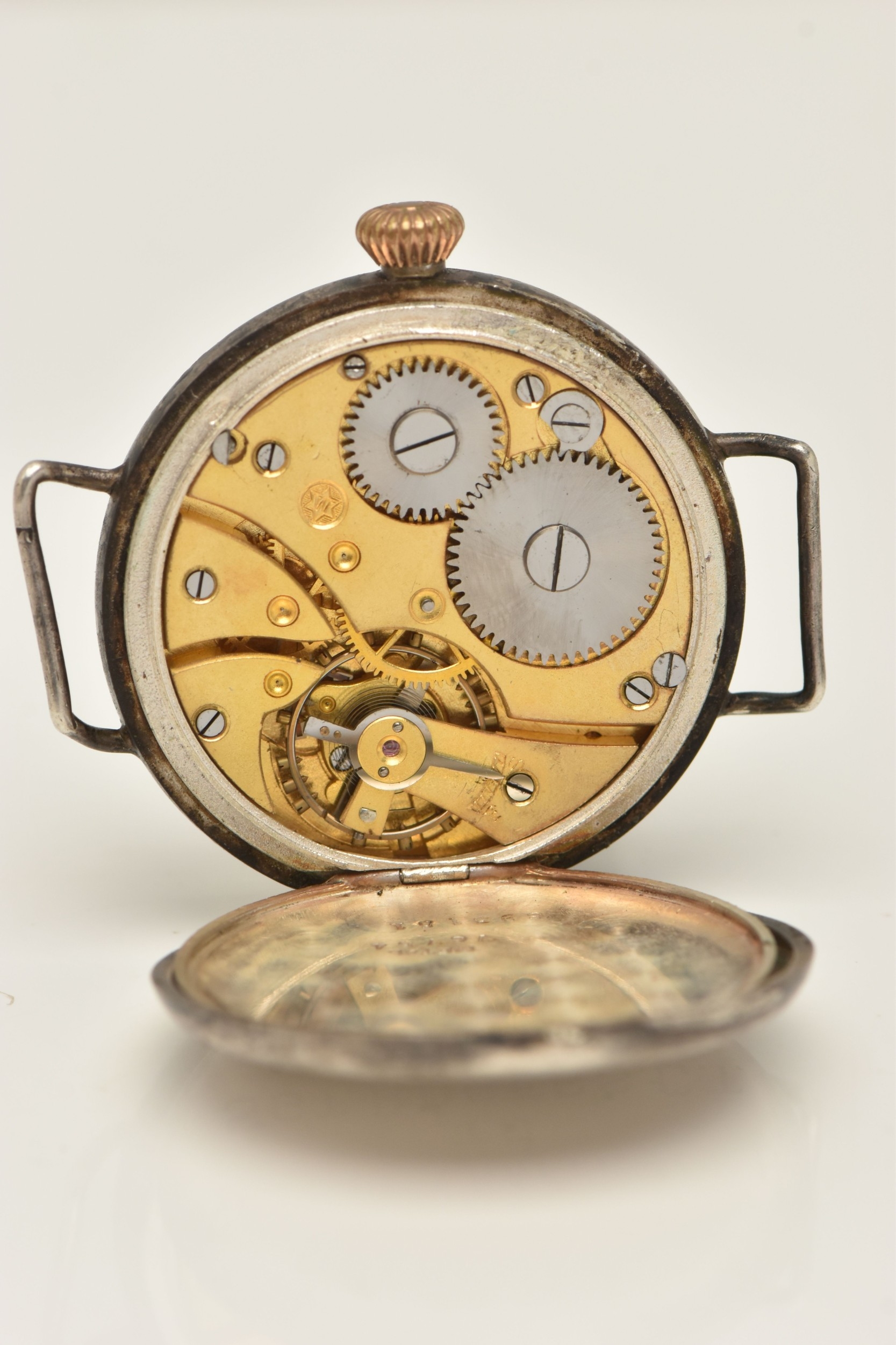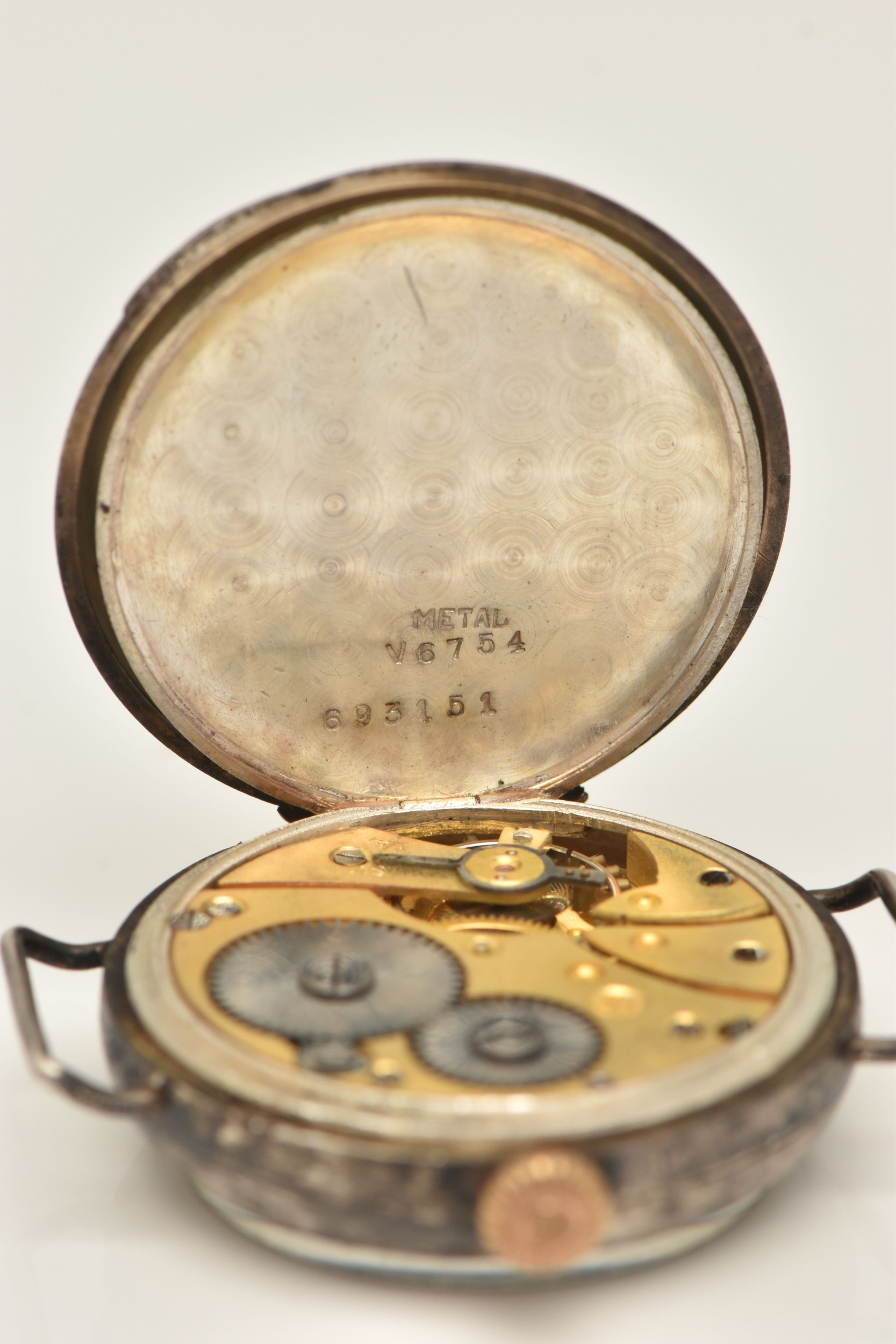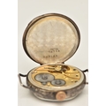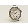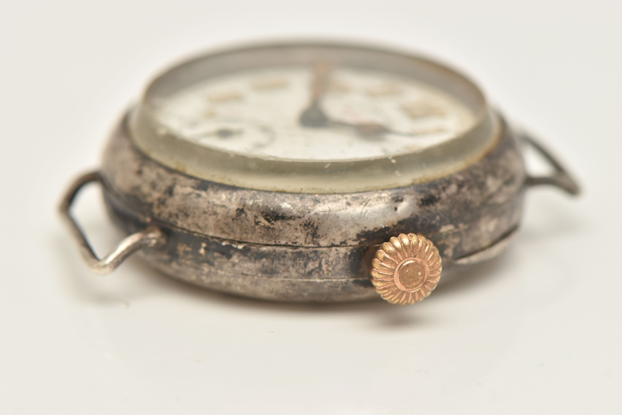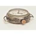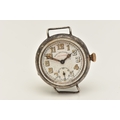 A 'WEST END WATCH CO' TRENCH WATCH HEAD, manual wind, worn luminescent Arabic numerals and hands, subsidiary dial at the six o'clock position, within a white metal case, engraved to the case back reads 'Presented By Sgts of N Battery R.H to Sgt Rogers C.T Nov. 1936', numbered 693151, approximate case width 34.0mm, inside case back stamped 0.900 Swiss control marks, approximate gross weight 34.8 grams (condition report: watch winds, sets and runs at time of cataloguing, although time keeping has not been tested, we cannot guarantee the working order of any watch)