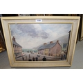 Early 20th Century naive style oil on board, figures in a street by coastal cottages, signed verso T. Maidment, 40 x 30cm