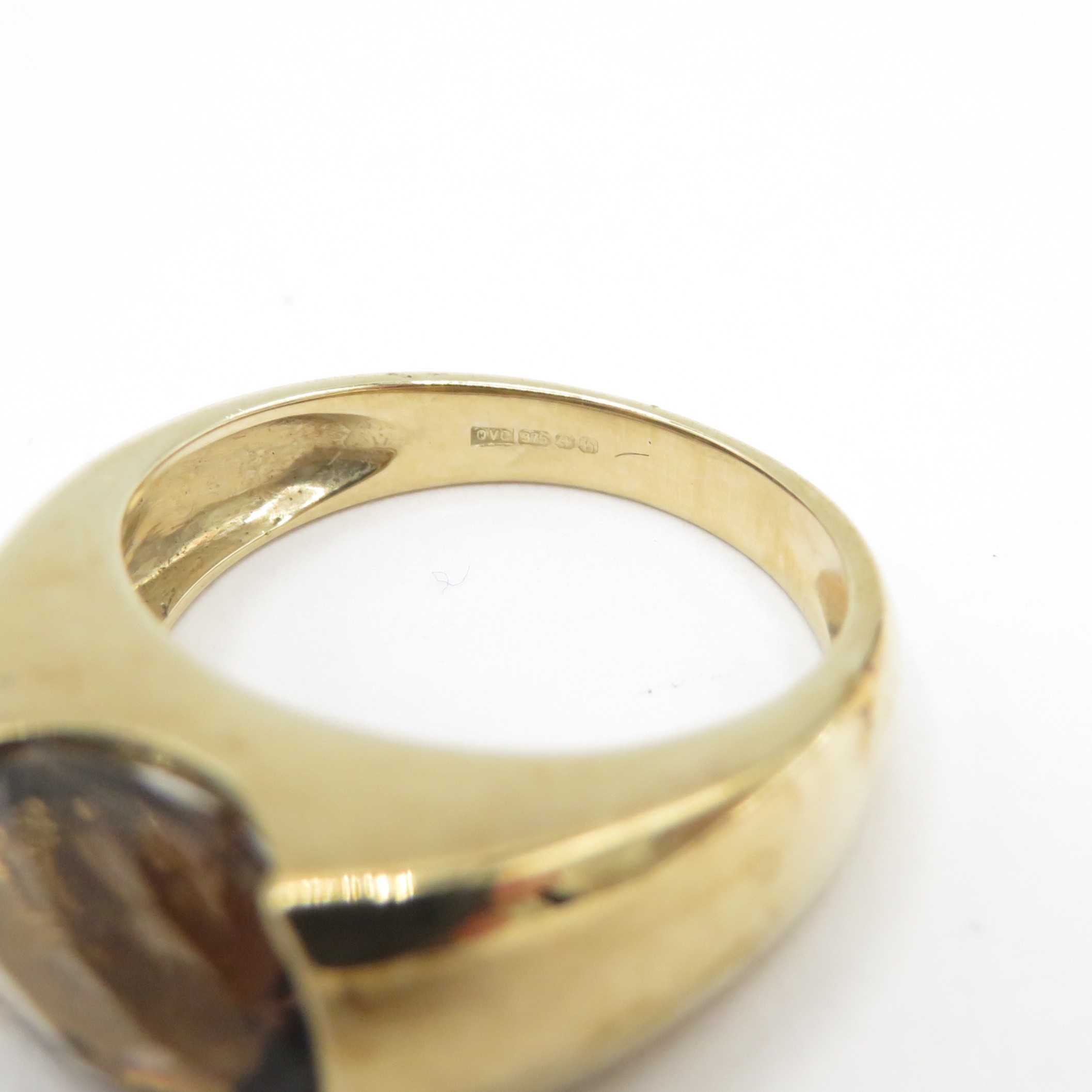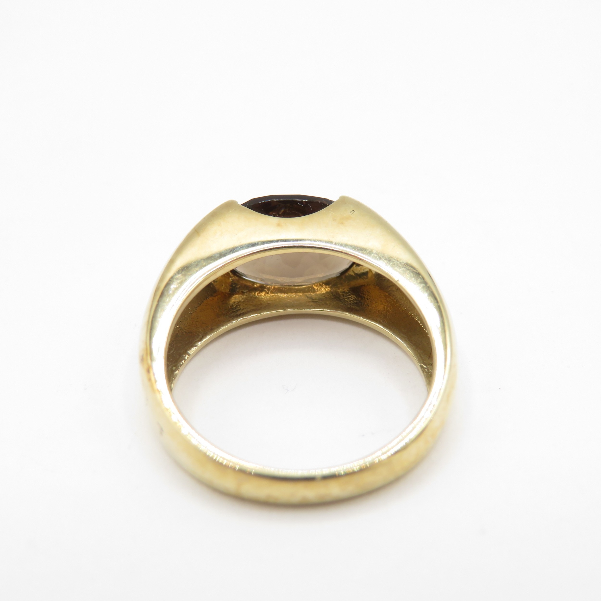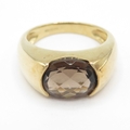 9ct gold rub over bezel smoky quartz ring (3.9g) size J 1/2