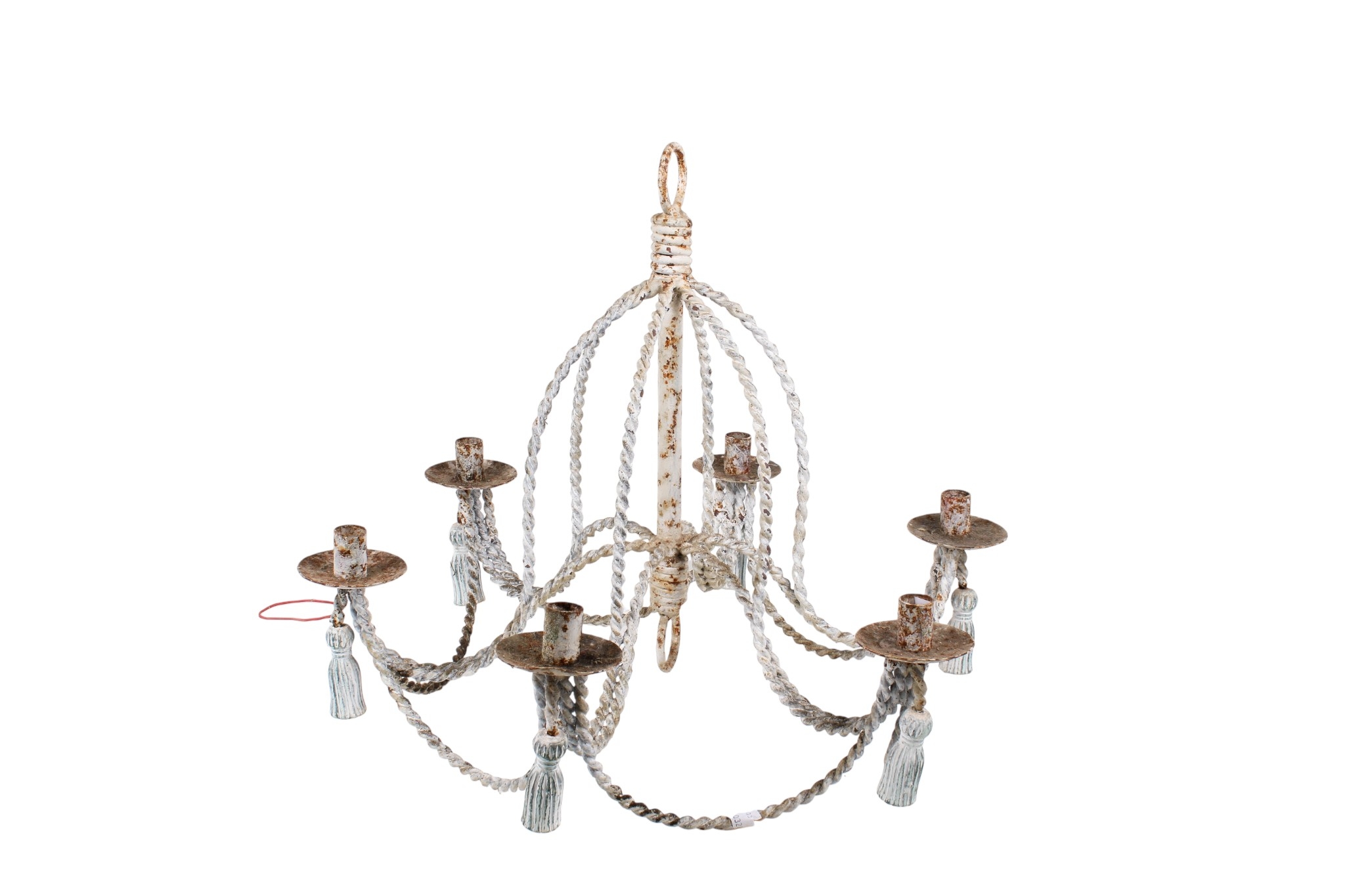 A painted metal wirework candelabra with six branches. H50cm x Diameter 60cm