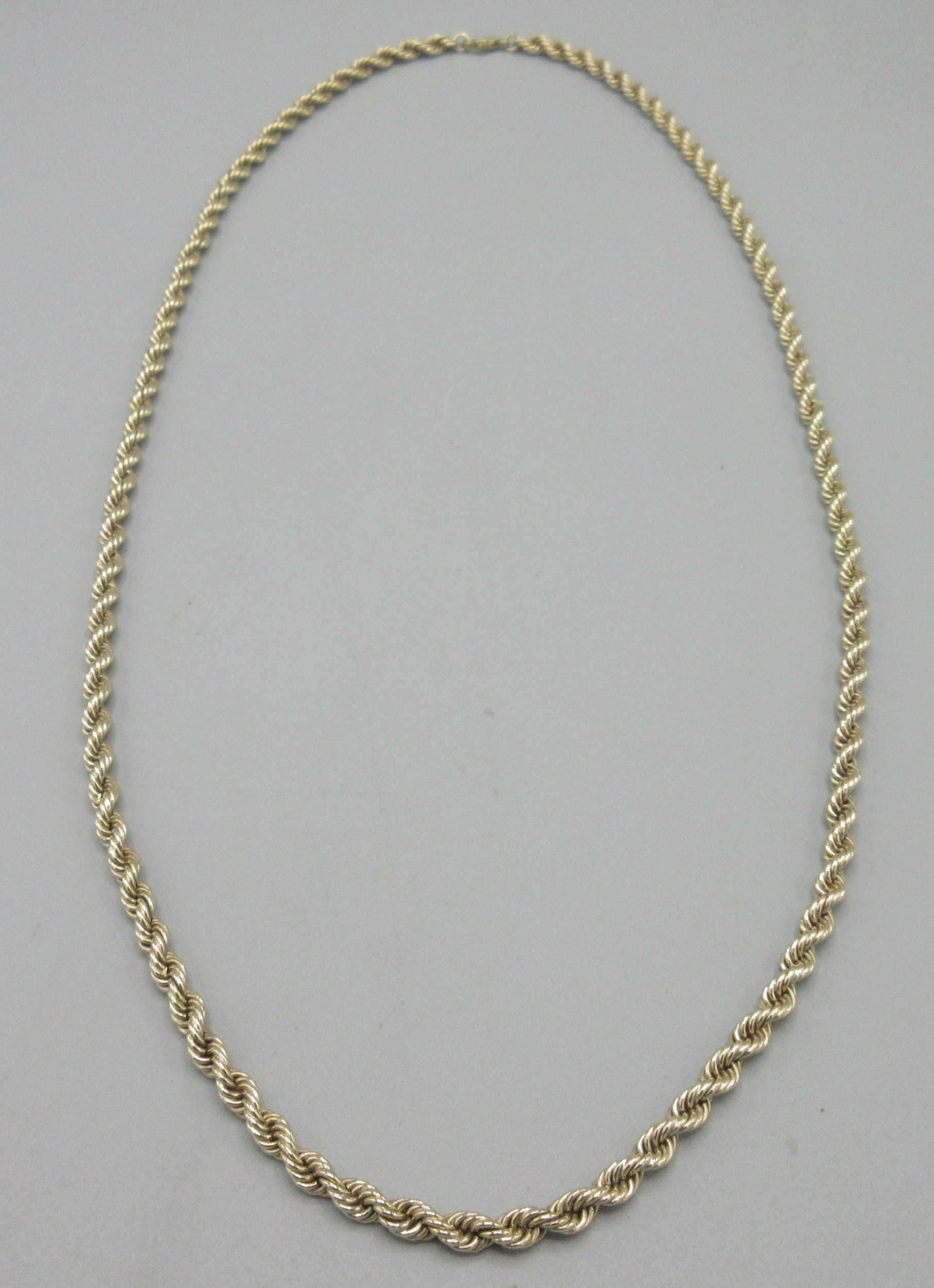 9ct yellow gold rope twist chain necklace, stamped 375, L72cm, 57.2g