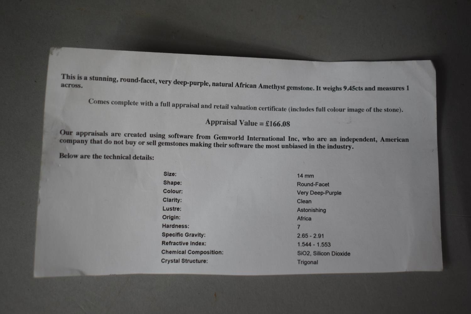 A 14mm Round African Amethyst Stone with Appraisal Value for £166.08