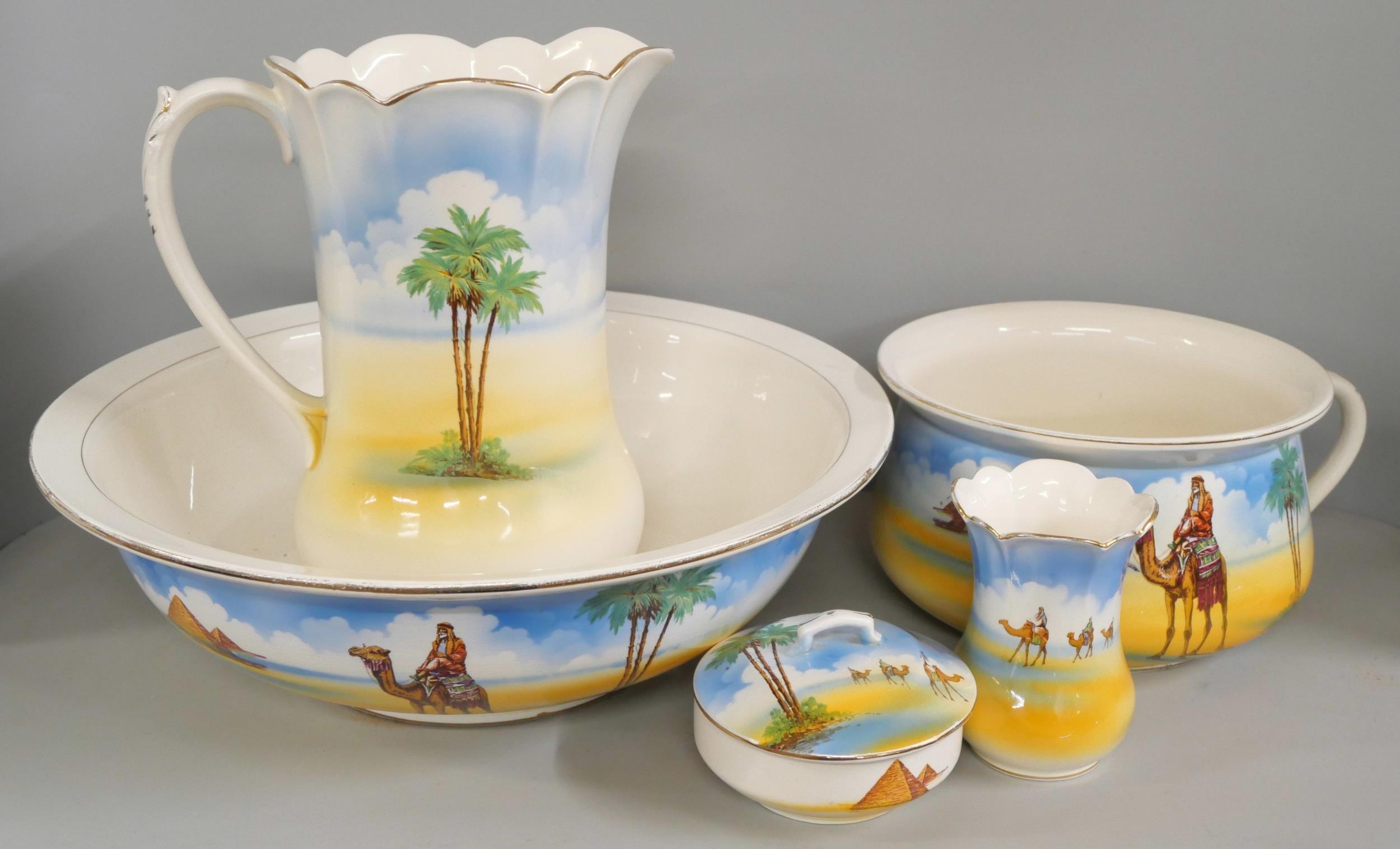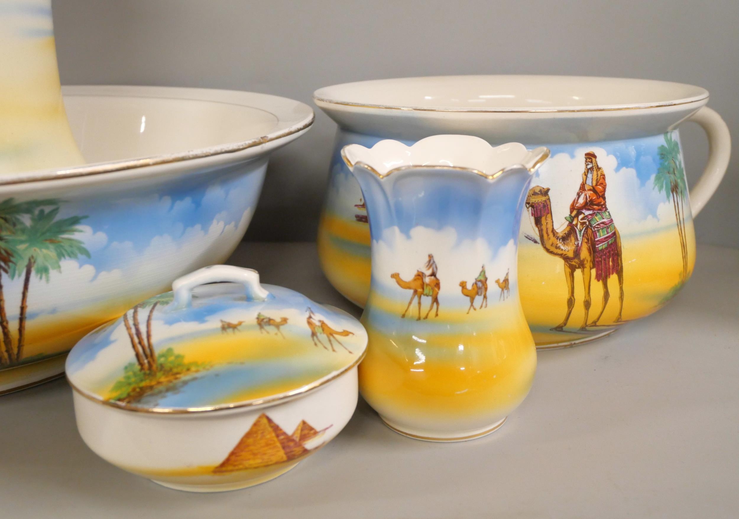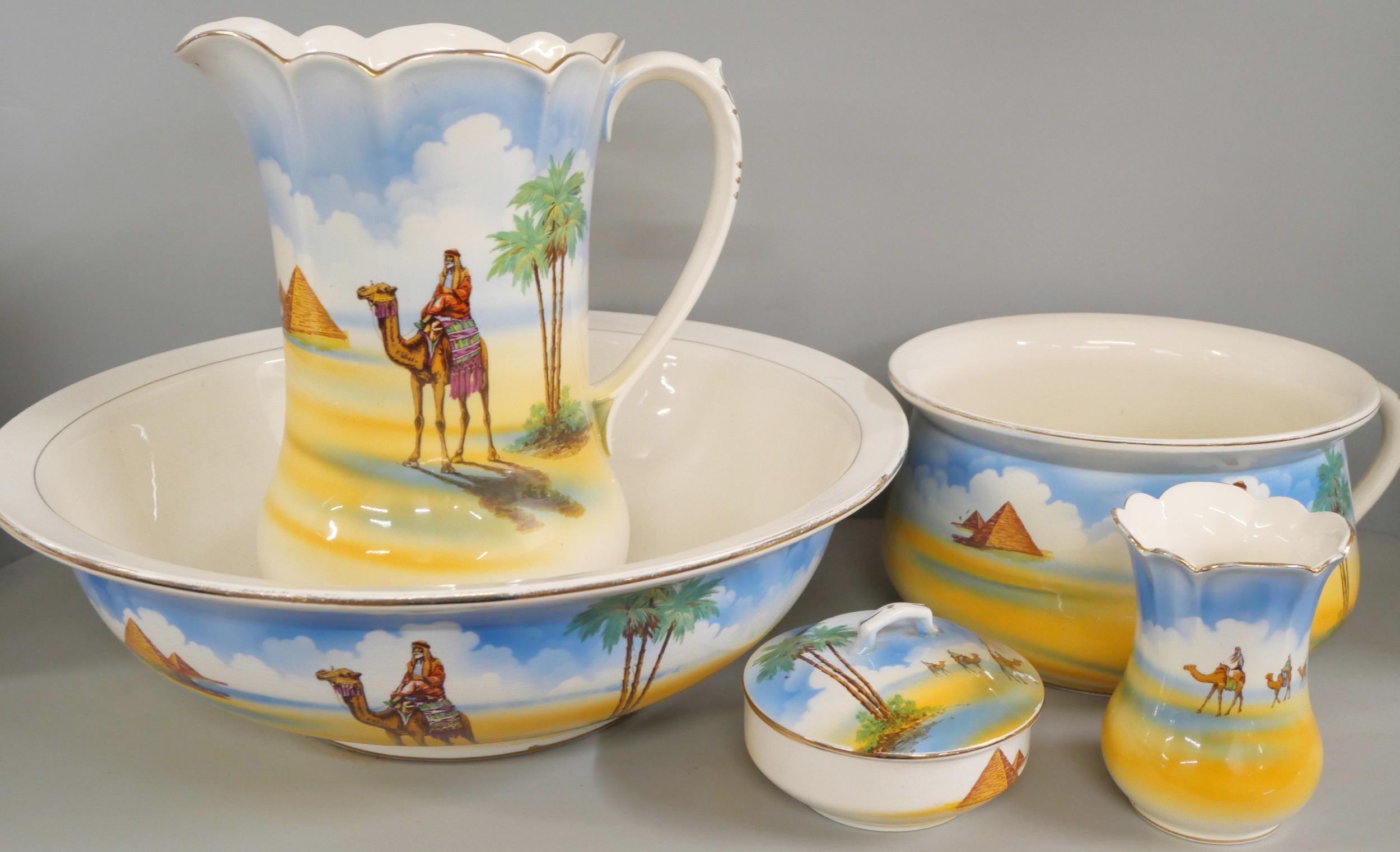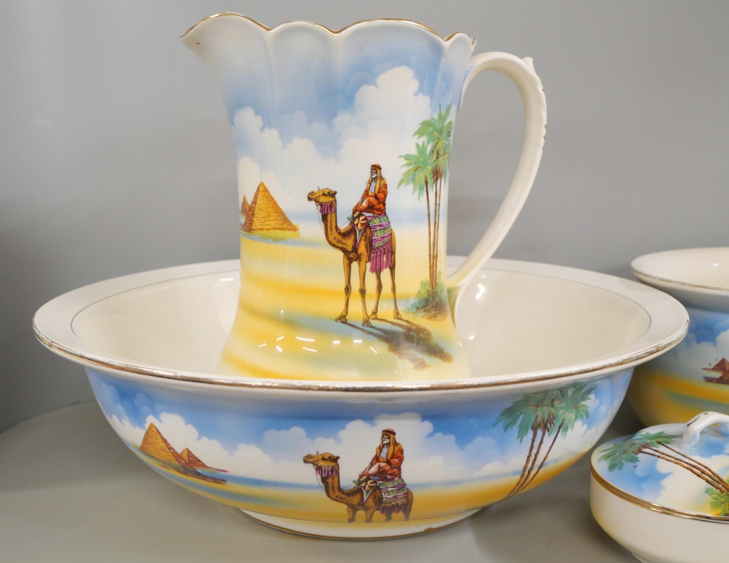 A Falcon Ware Victor toilet set decorated with Egyptian scenes **PLEASE NOTE THIS LOT IS NOT ELIGIBLE FOR IN-HOUSE POSTING AND PACKING**