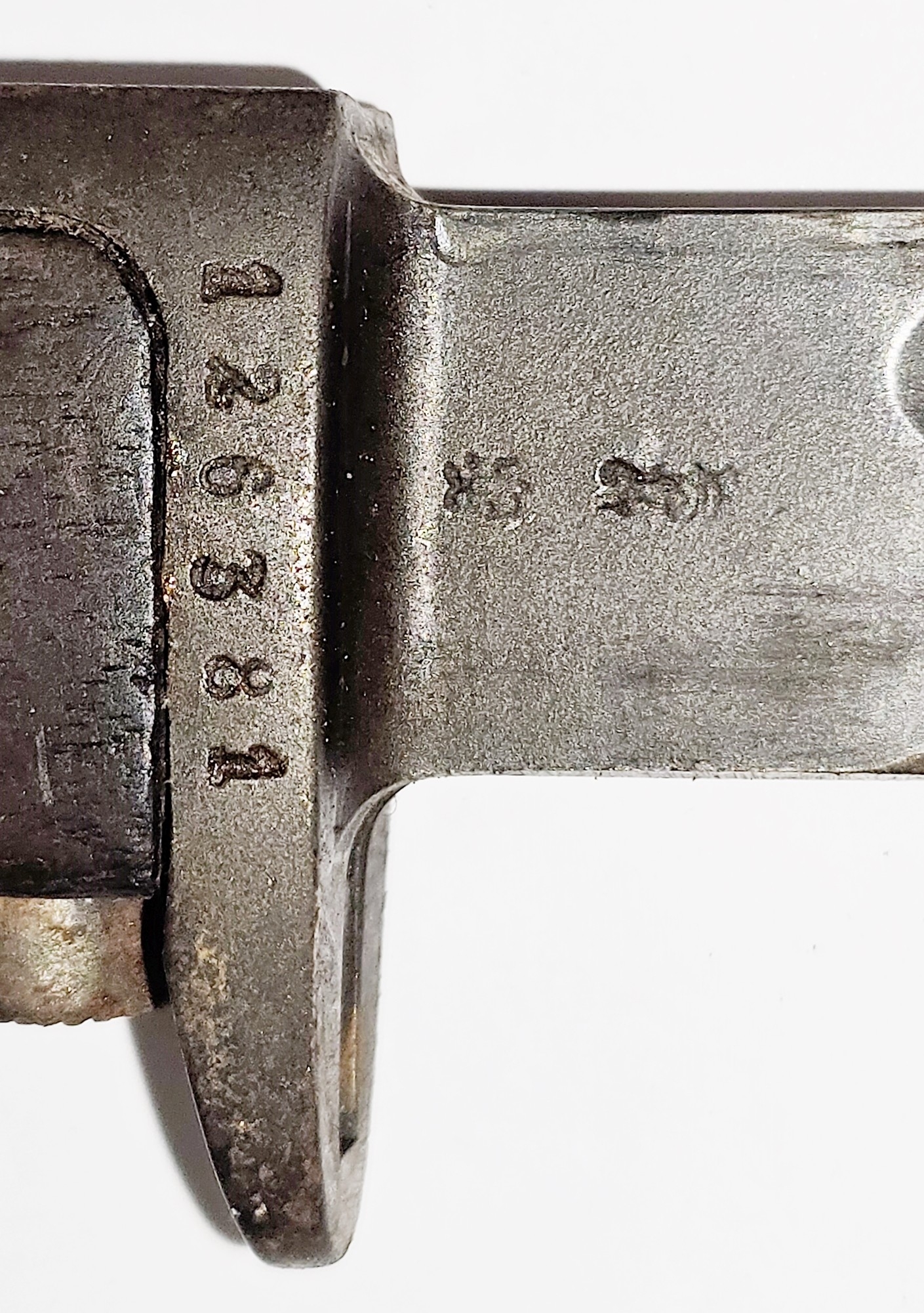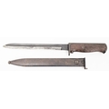 Norwegian M1894 bayonet and scabbard with wooden grip and steel sheath, stamped 126381, the blade 8.5" long (please note VAT will be payable on the hammer)
