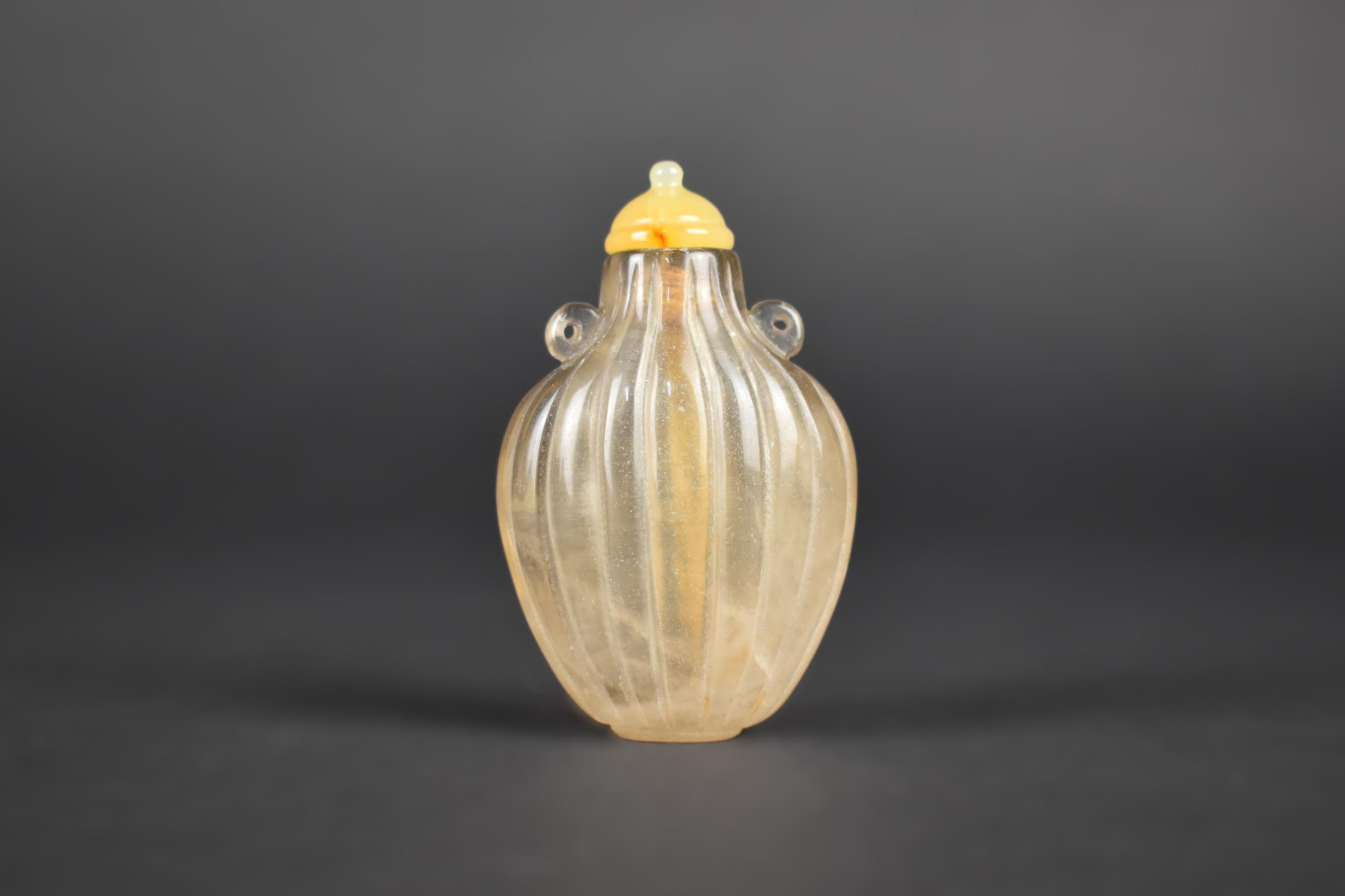 A Chinese Rock Crystal Type Snuff Bottle of Lobed Form and Short Neck Flanked by Two Loop Rings, Complete with Hardstone Stopper, 6cm