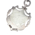 Antique Sterling Silver Albert Watch Chain with Fob. Stamped in various locations. Minor surface scratches, clip is in working order. Measures approximately 41cm including fob. Weighs in total 43g.