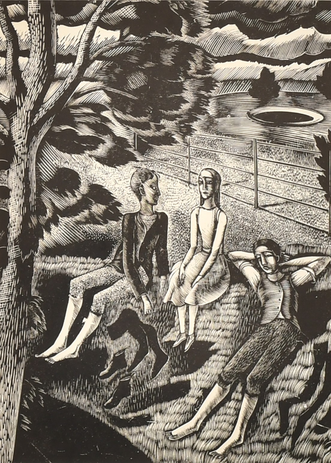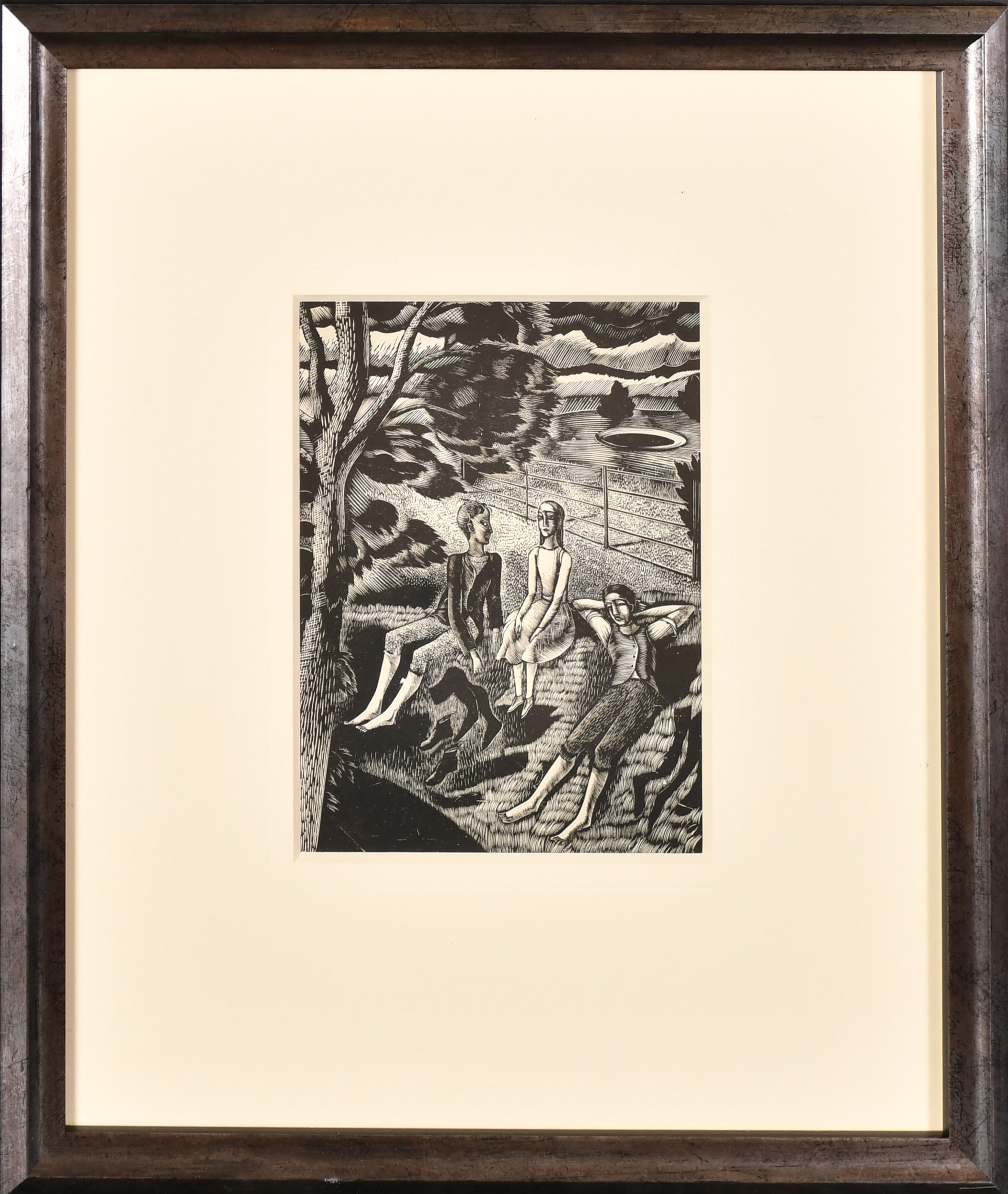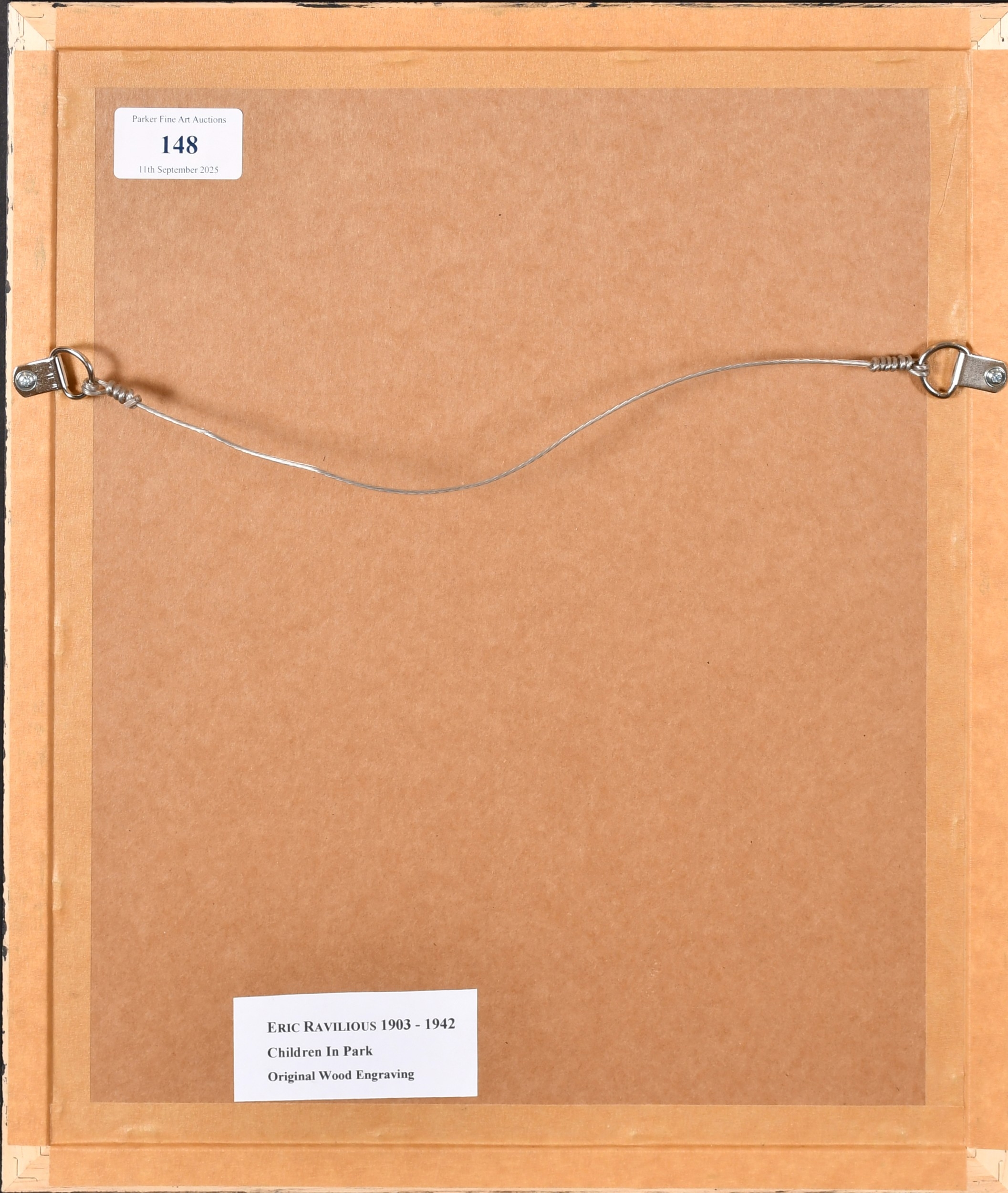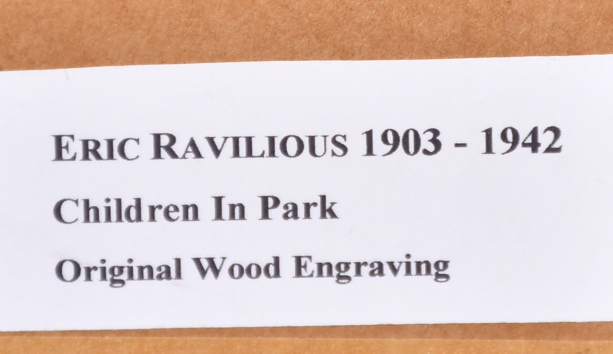 Eric Ravilious (1903-1942) British. "Children in Park", Wood engraving, 6.5" x 4.75" (16.5 x 12.1cm)