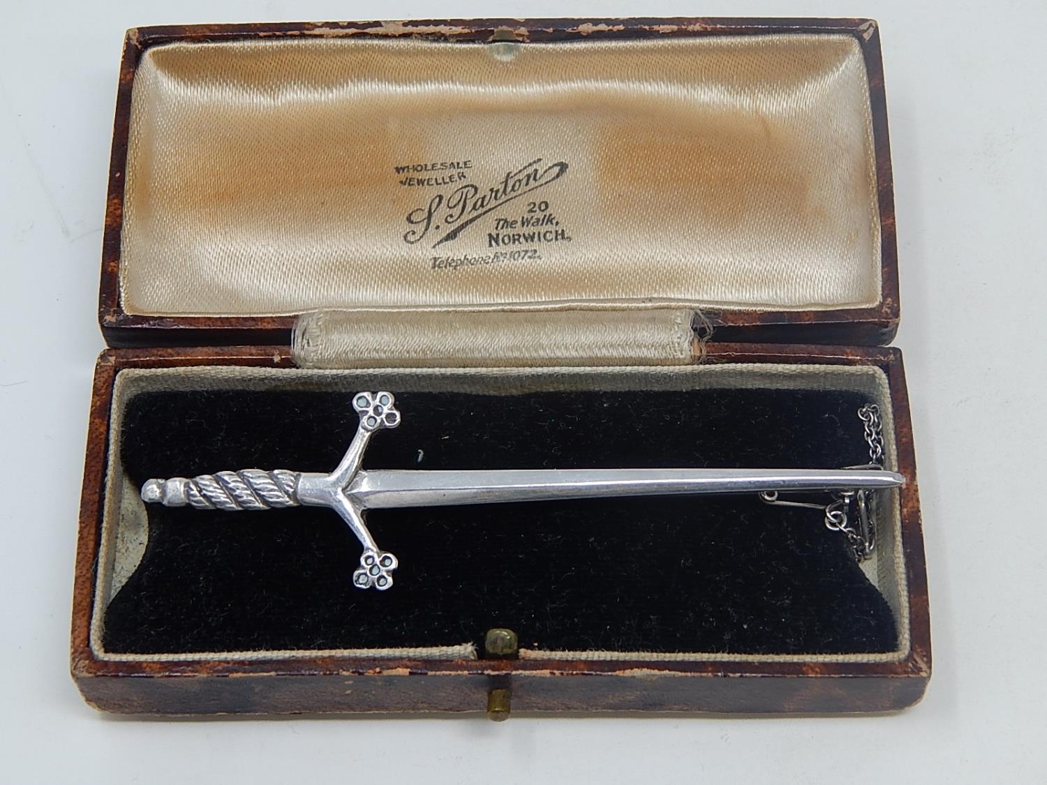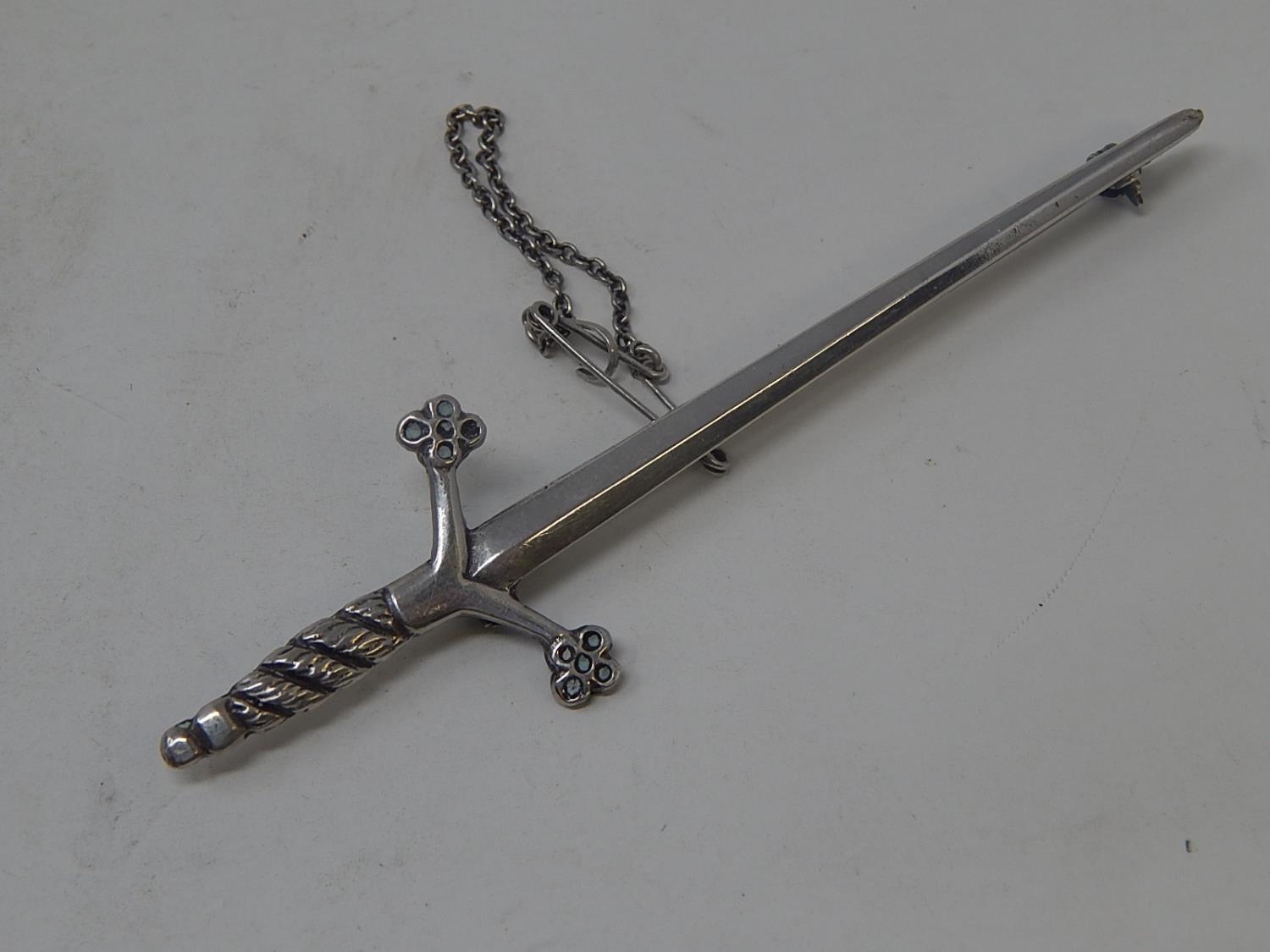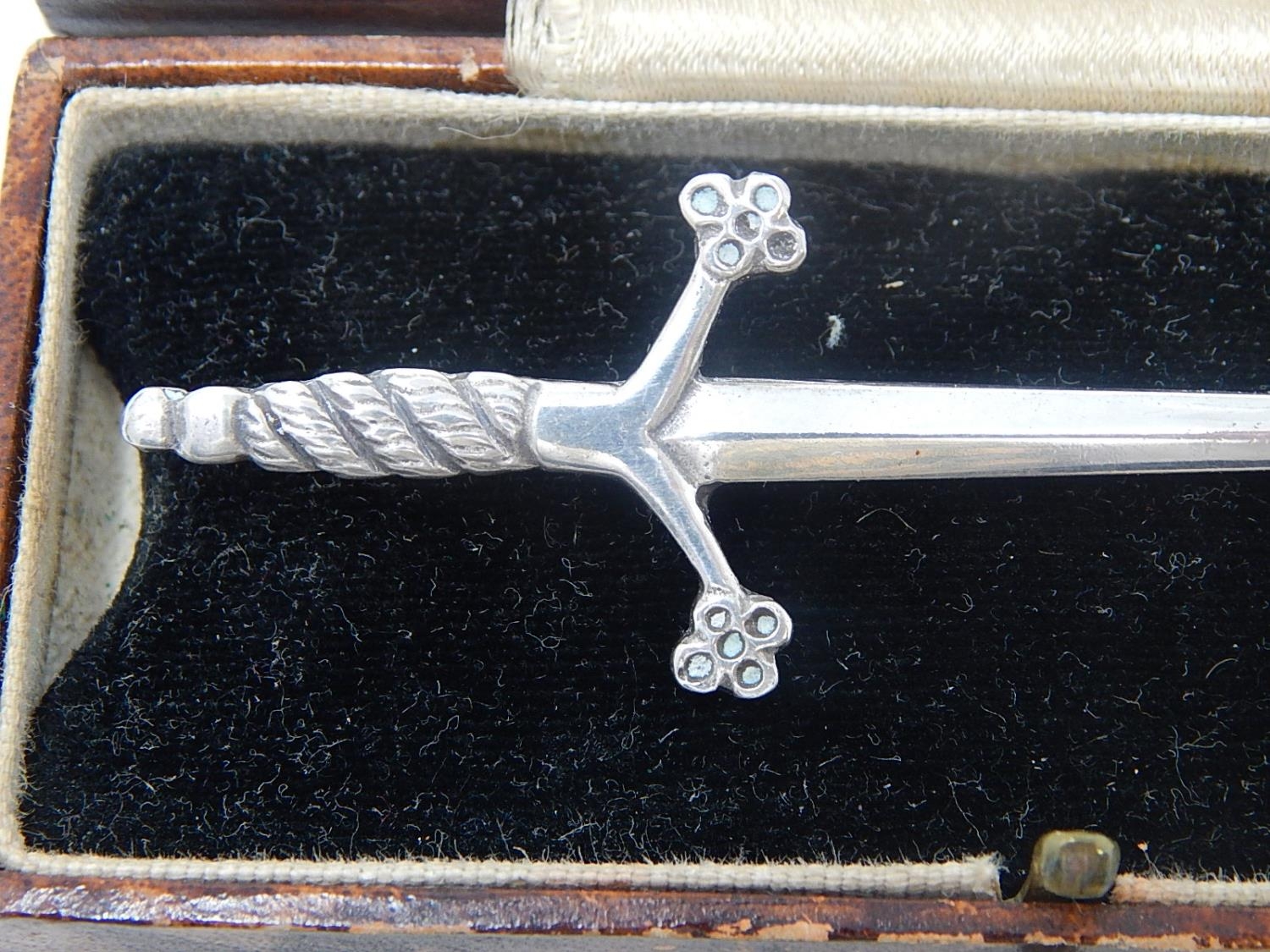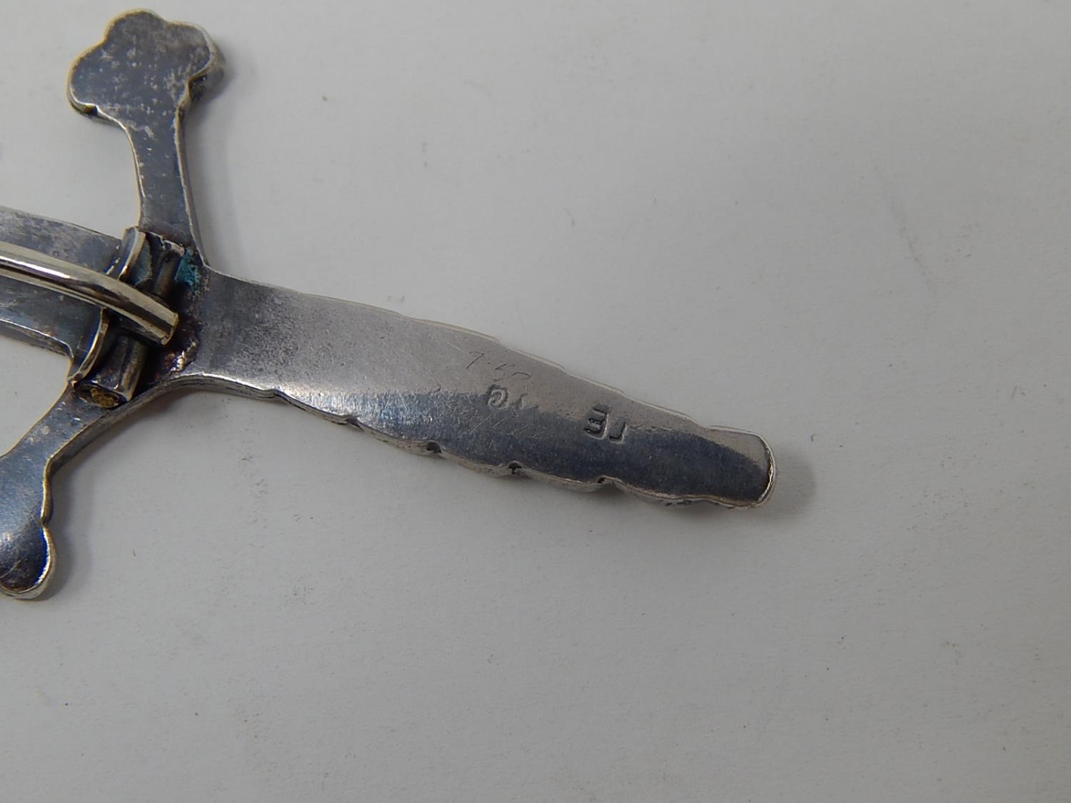 Silver Kilt Pin Formed as a Scottish Sword. Bears strike marks & Initials: Length 9cm