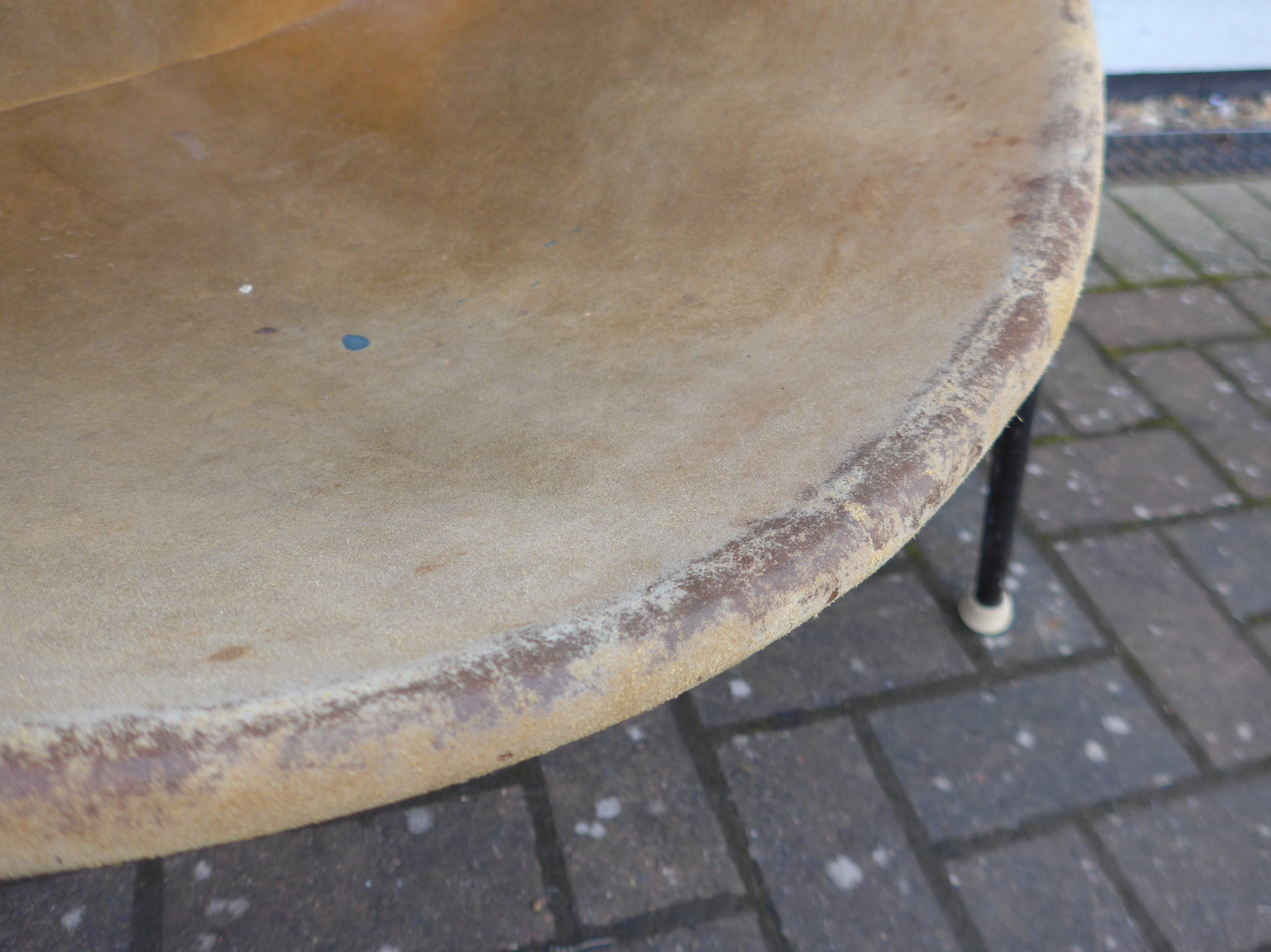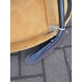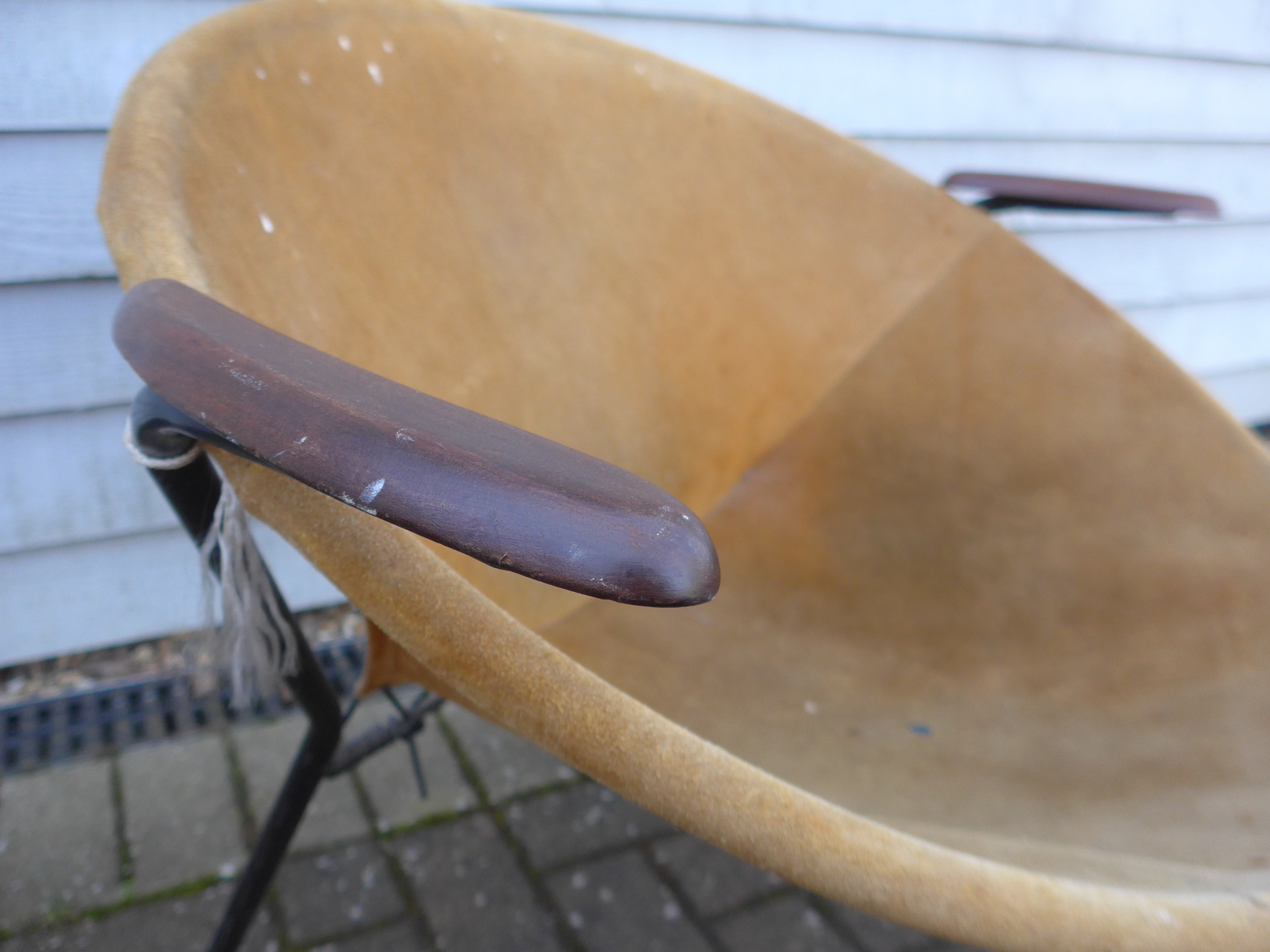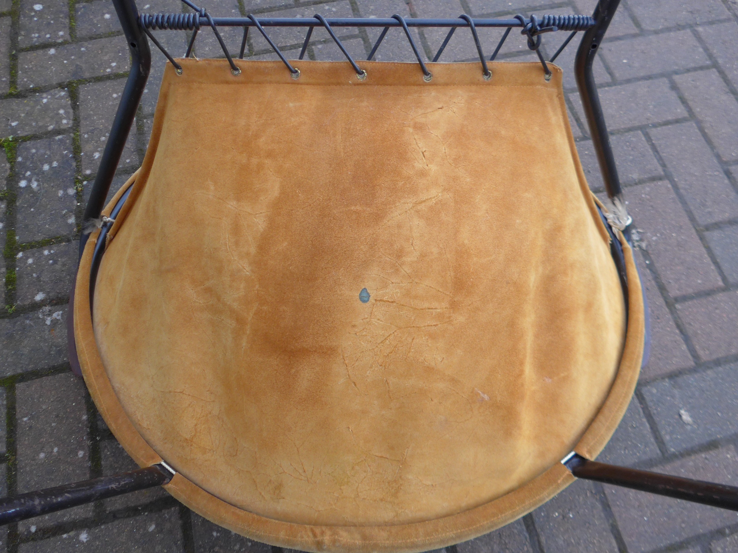 A "Balloon" chair by Hans Olsen for Lea Design circa 1960's, tubular black metal frame, teak arms and suede seat and back, 76cm wide x 69cm x 65cm high
