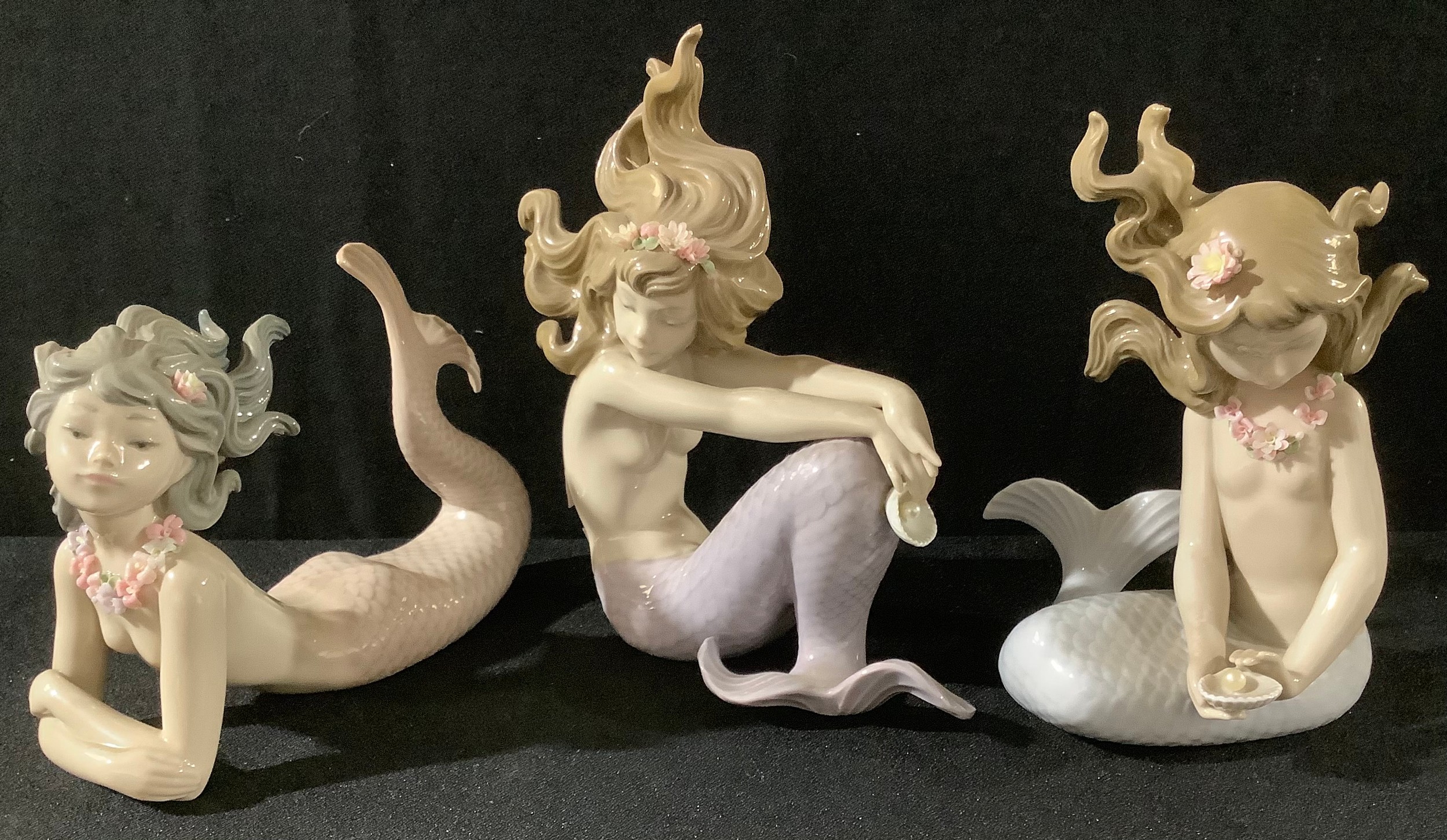 A set of three Lladro mermaid figures, the tallest 17cm, printed and impressed marks (3)