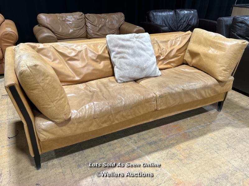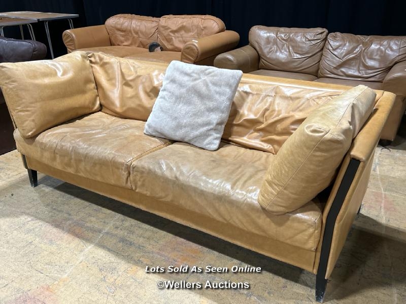 Faux leather sofa, 74cm (h) x 209cm (w) x 89cm (d) / Buyer will be responsible for removal, located in the large hall / Lot Location: The Tropicana, Marine Parade, Weston-Super-Mare, North Somerset, BS23 1BE