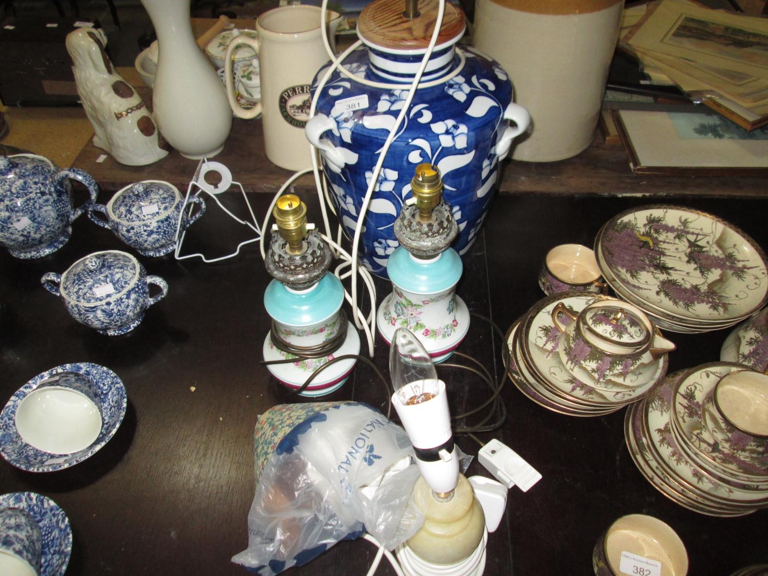 2 x Limoges style table lamps, Chinese blue and white table lamp etc.
