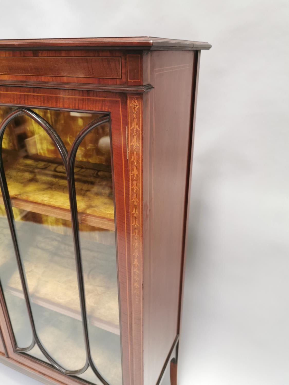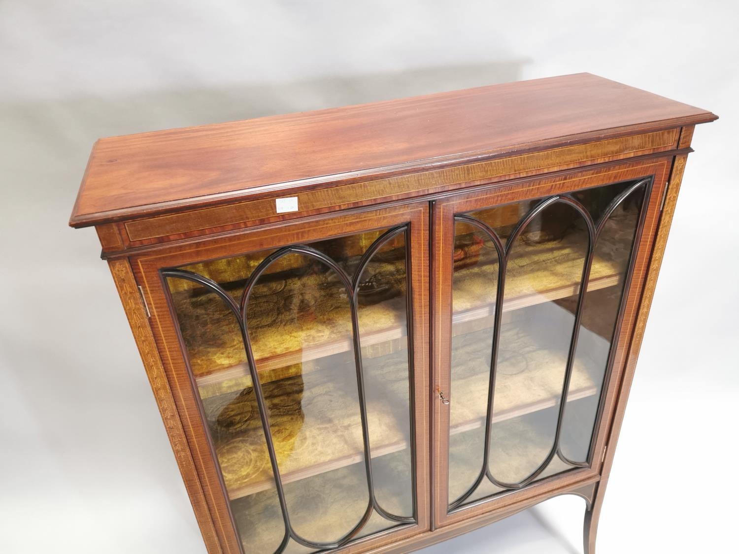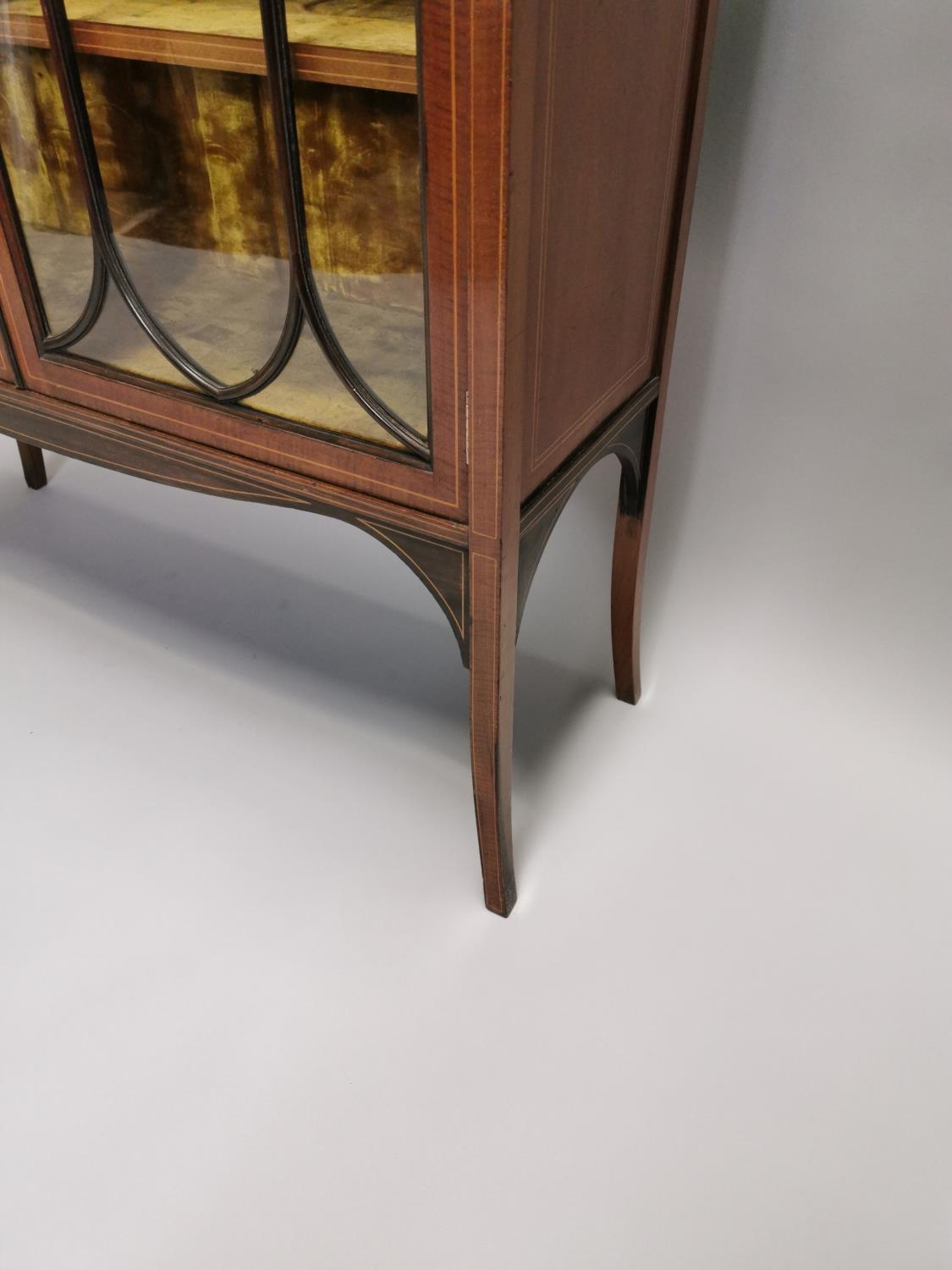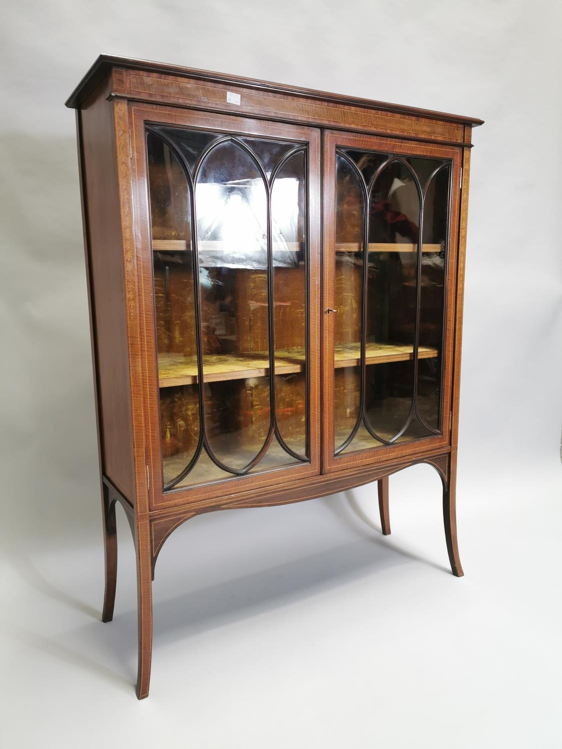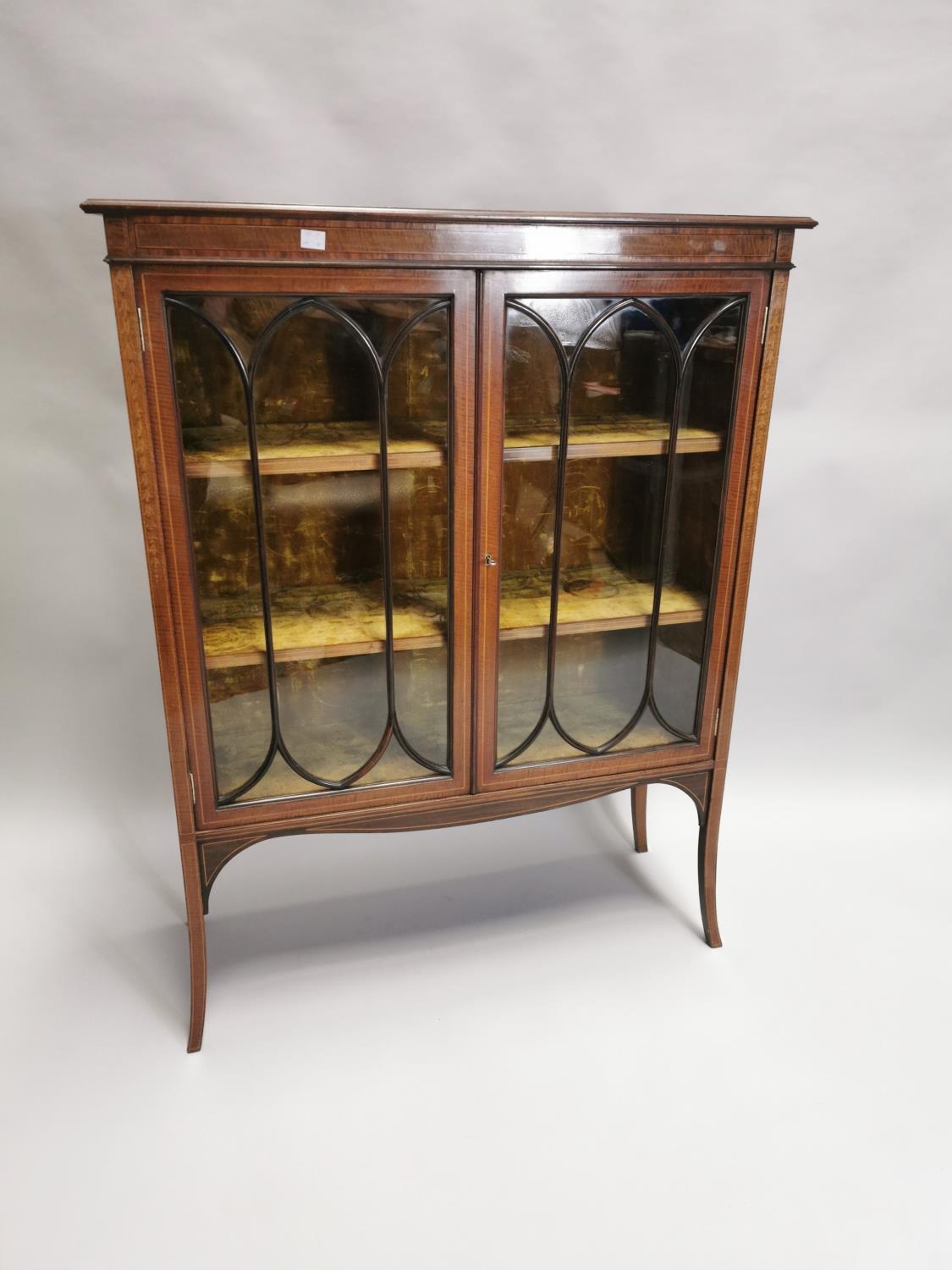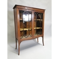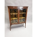 Edwardian inlaid mahogany display cabinet with two glazed doors {129 cm H X 99 cm L x 34 cm D}