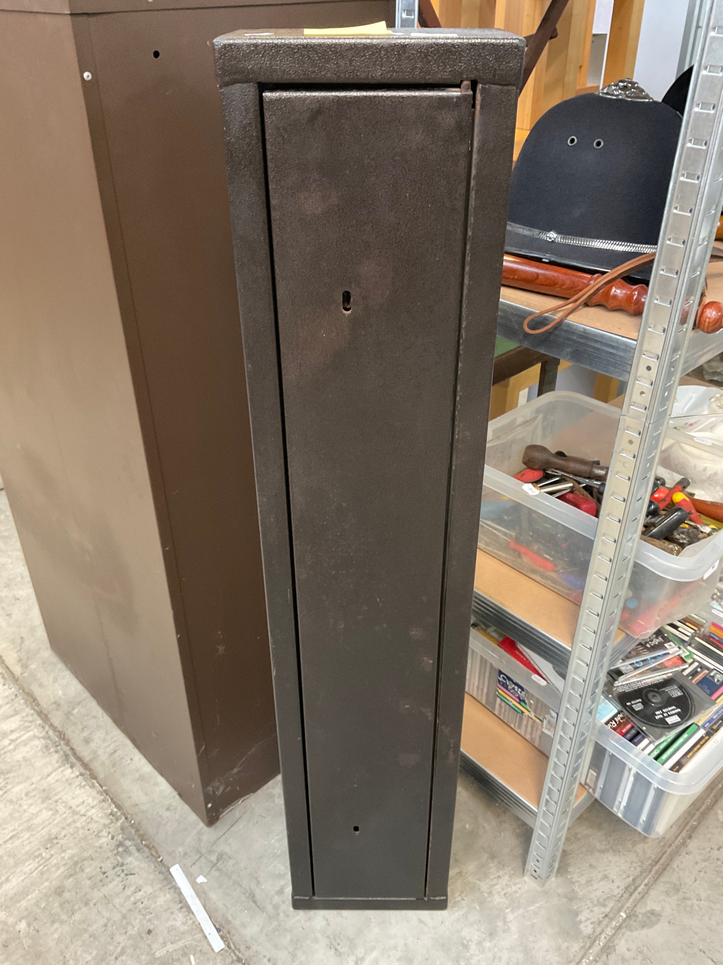 Metal gun cabinet with two keys for each lock